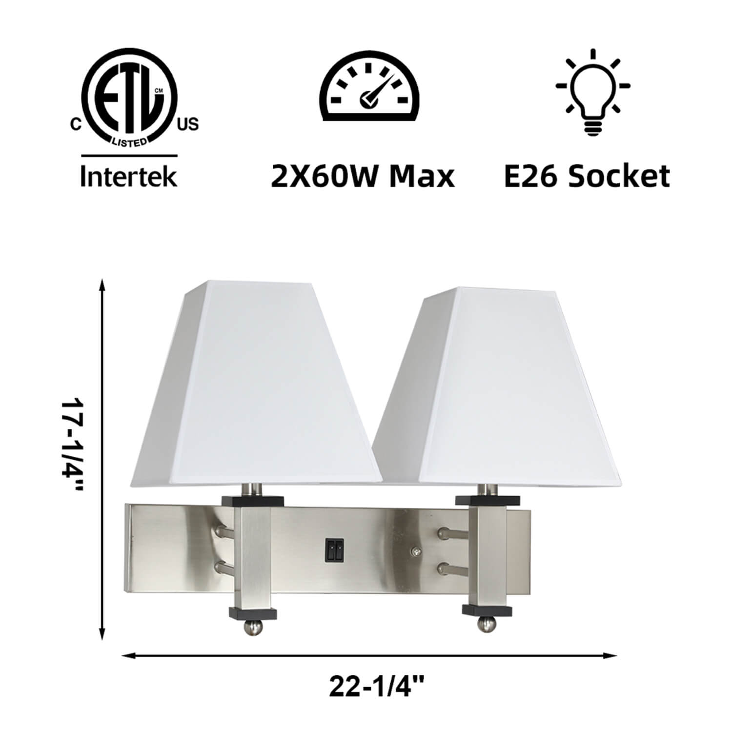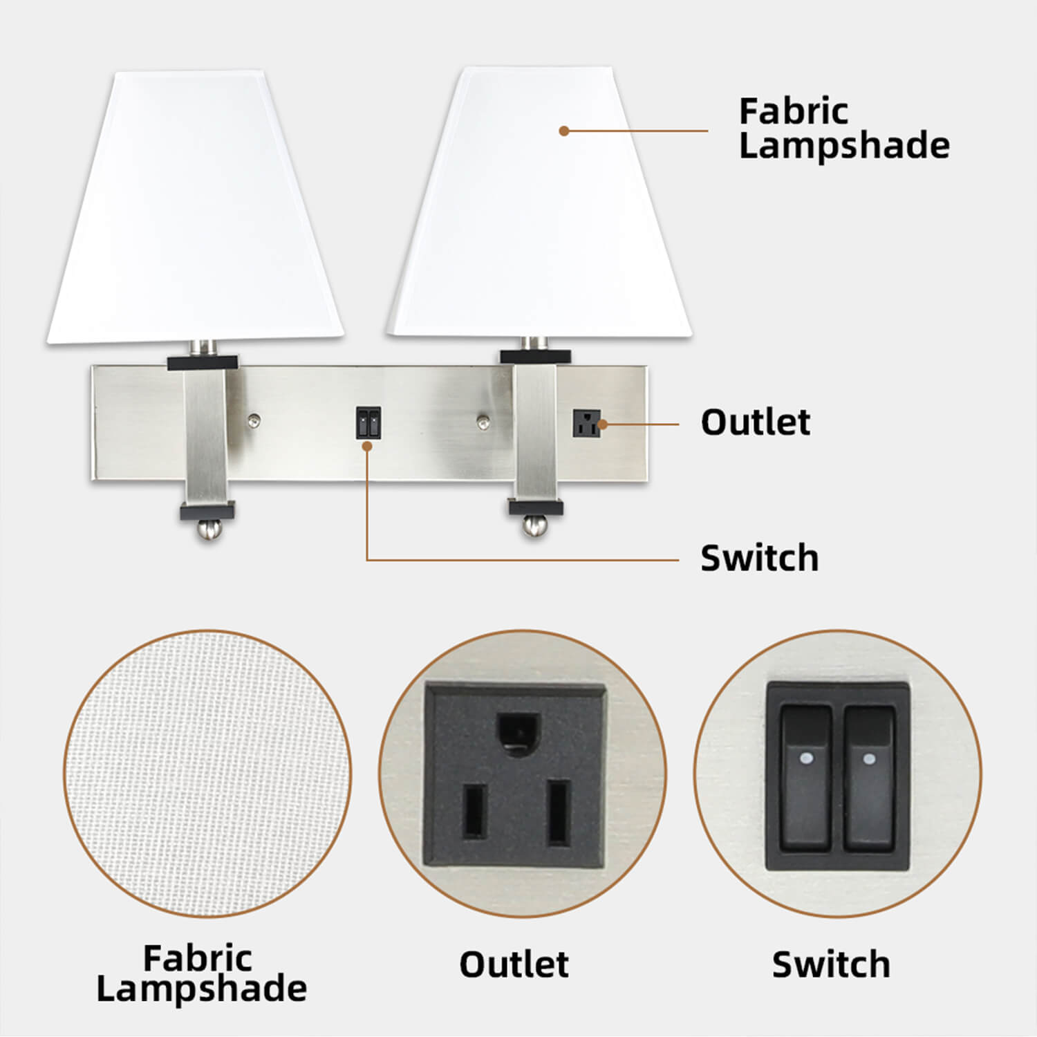 Fabric Lamp Guest Room Bed Reading Indoor Bedside Lamp Bracket Light Fixture Sconce Wall Lamp for Hotel Bedroom XB-W551-BN
