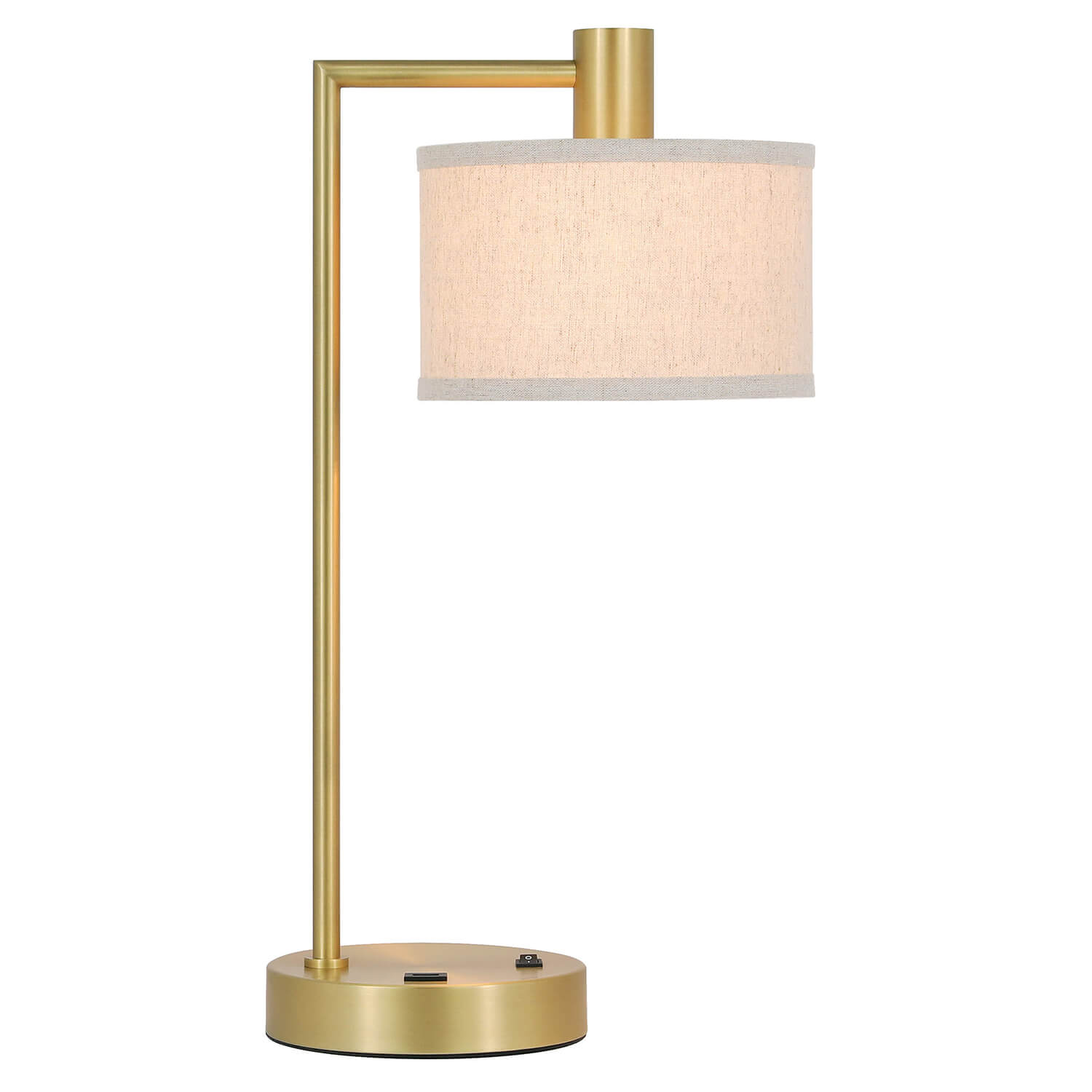 Table Lamp with USB Port, Fabric Shade, Satin Brass, Bedside Desk Lamp for Bedroom XB-TL1230-SB
