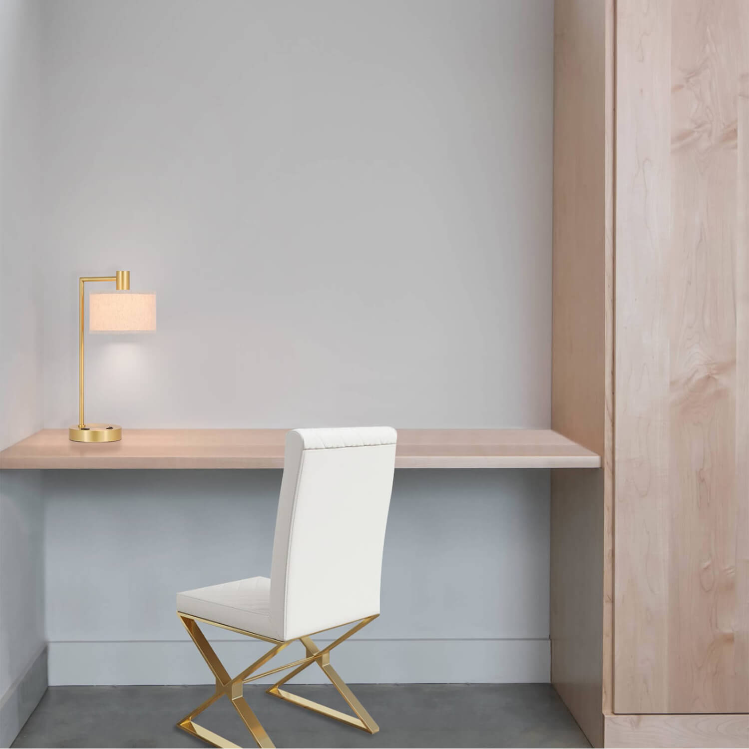 - MODERN DESIGN: Satin Brass Desk Lamp is in Metal Consturction with round linen fabric shade that looks amid contemporary decoration, and this table lamp for bedroom, living room, den, nursery, meditation room or office.