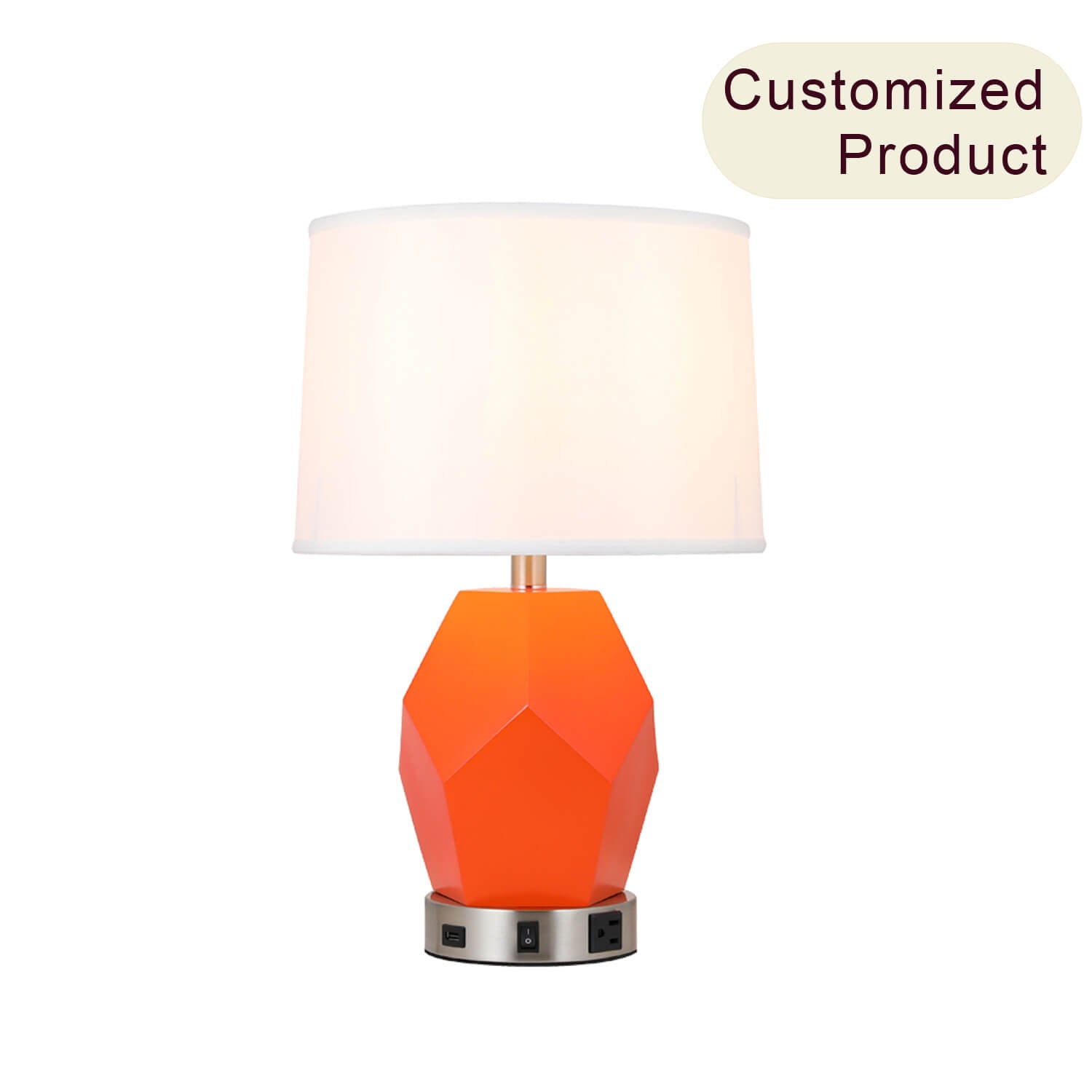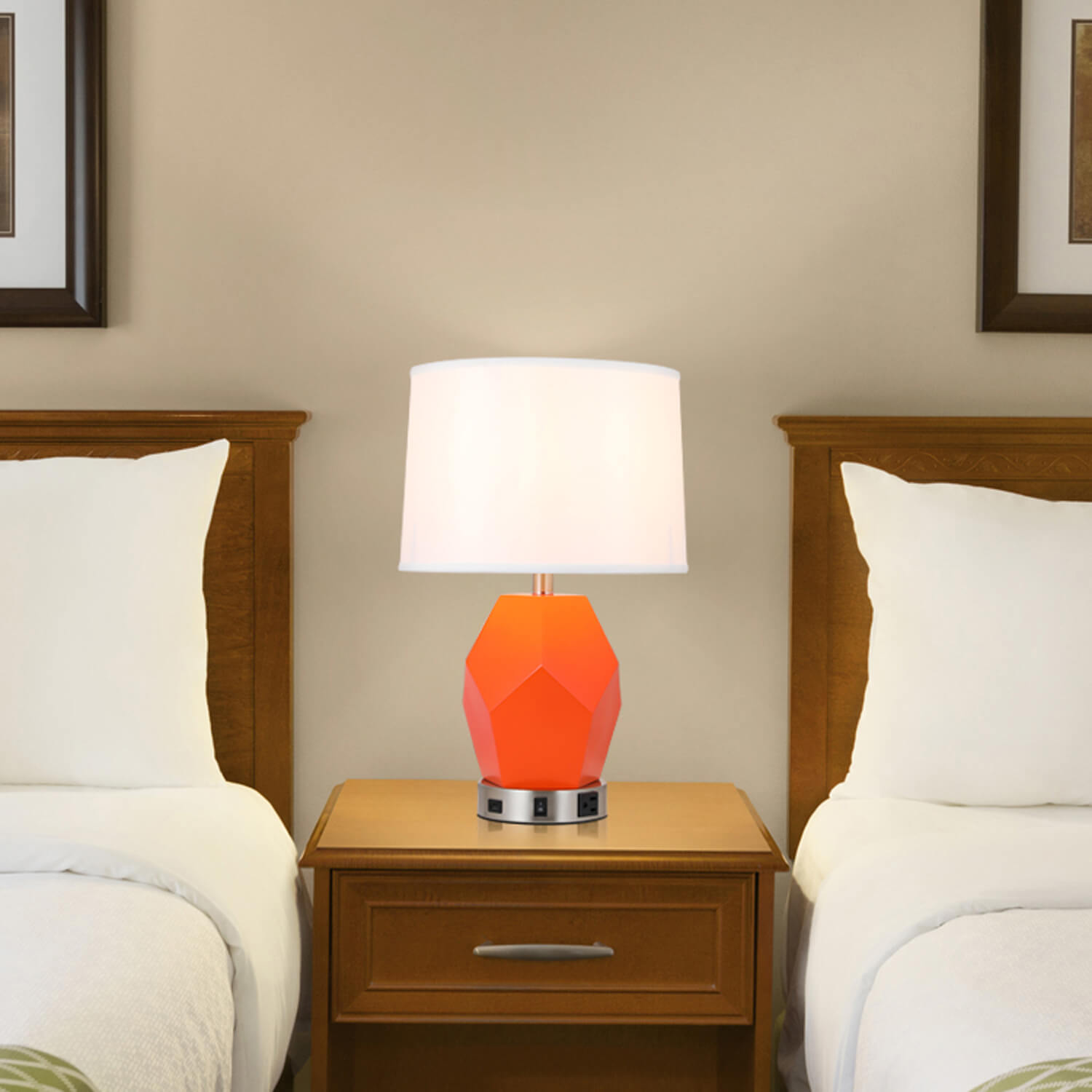 2025 Decor Usb Charging Fabric E26 Bedside Lamp Hotel Lighting Bedside Table Lamp for Bedroom XB-TL300-Orange