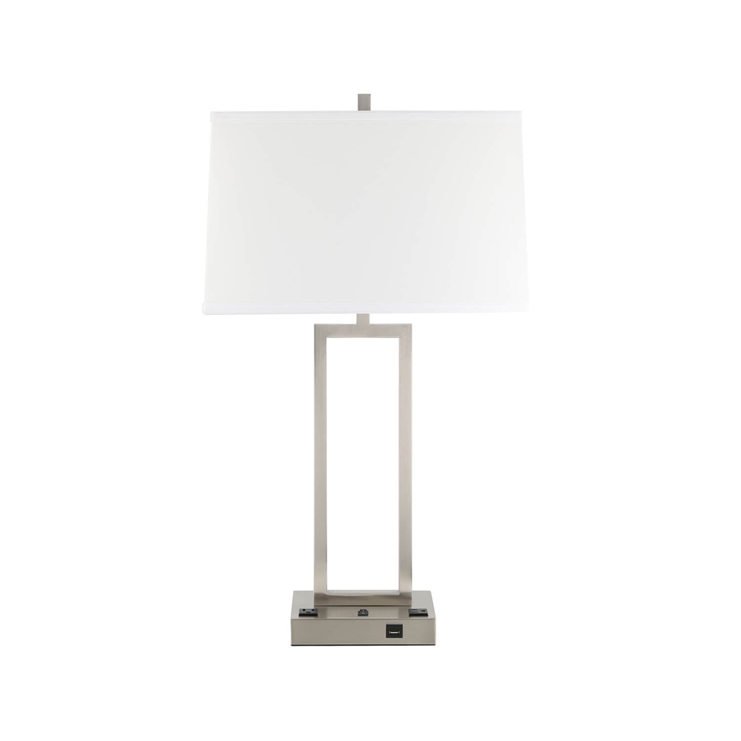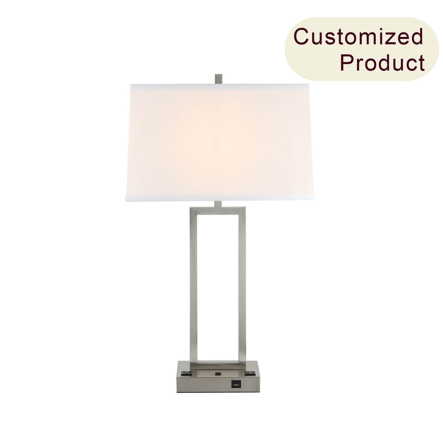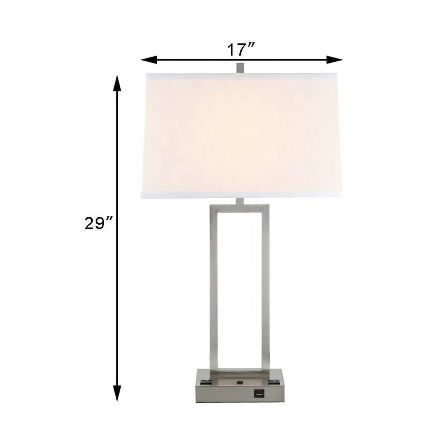 Modern Brushed Nickel Office Home Hotel Bedside Desk Table Lamp with Outlets and USB XB-TL322-BN