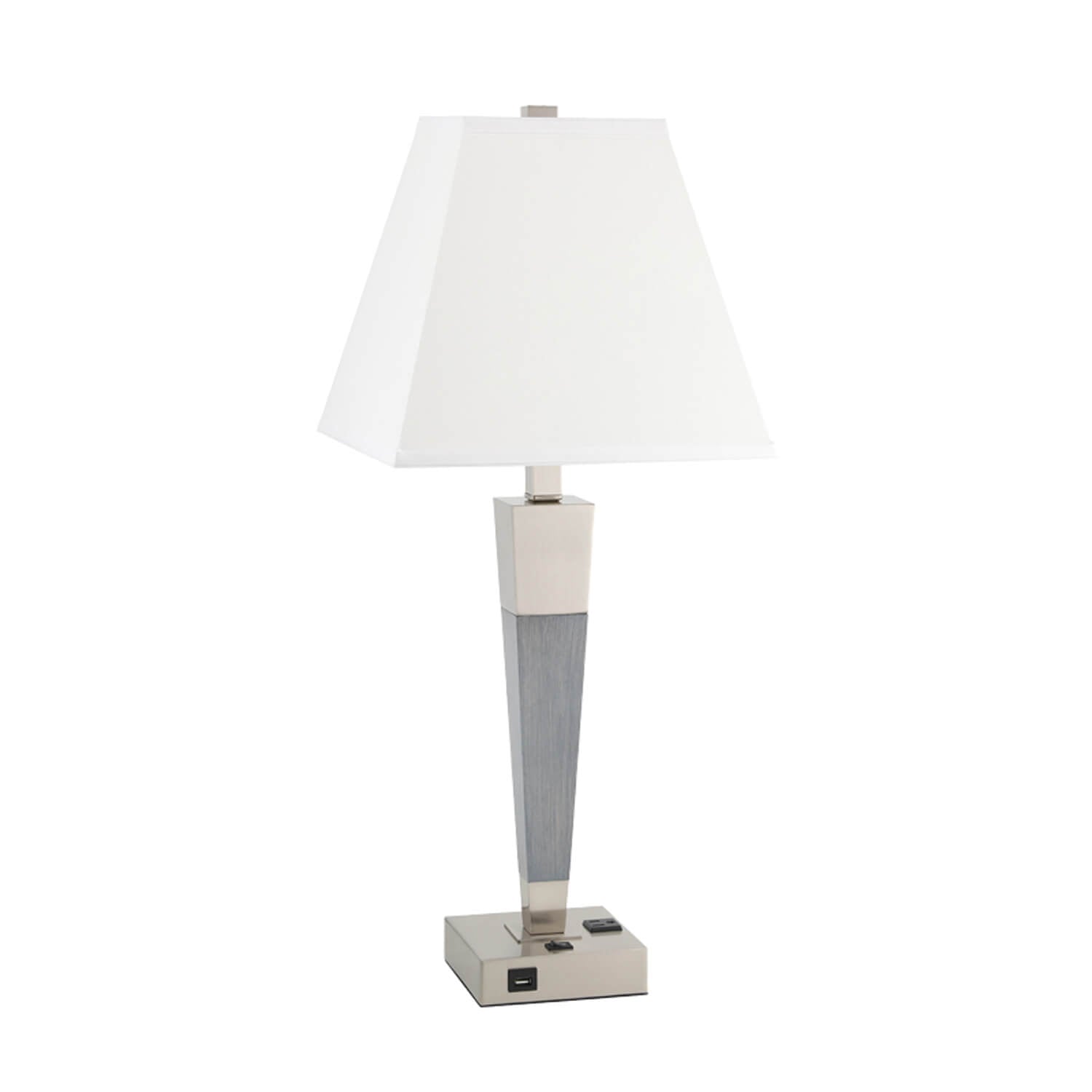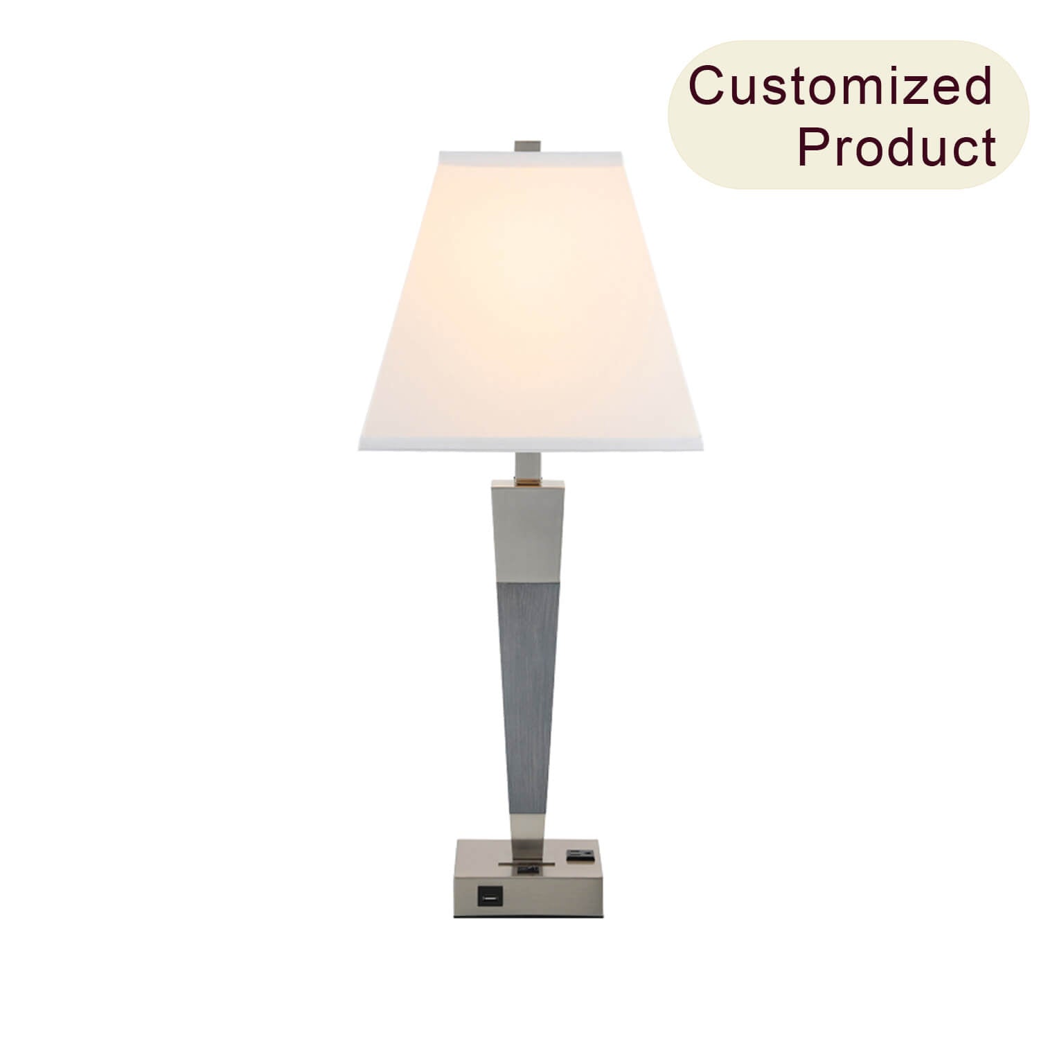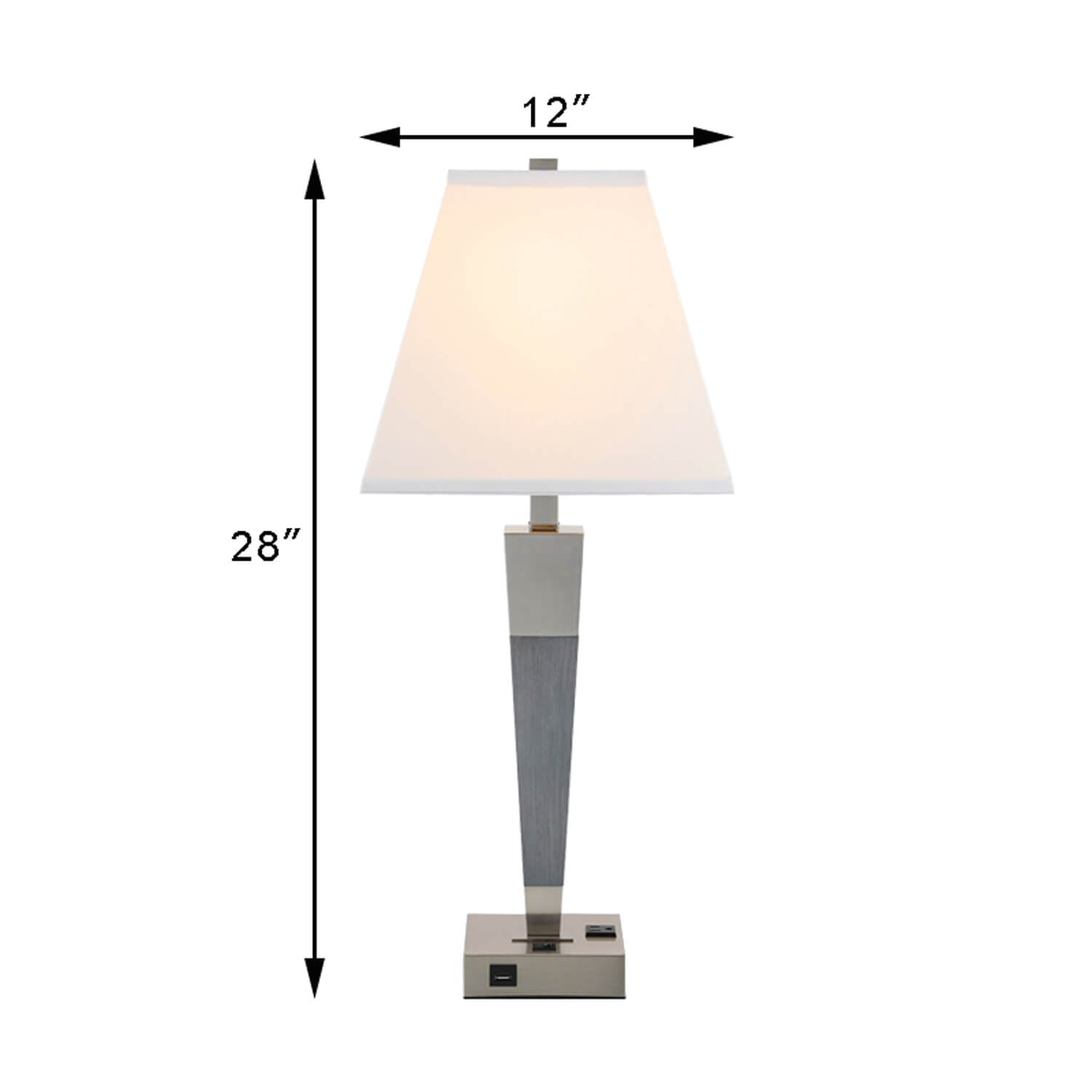 Modern Table lamp with Cone Wood body and linen fabric shade in brushed nickel finish looks amid contemporary decoration, of which helps to soften lights and add a shade of elegance to your room.