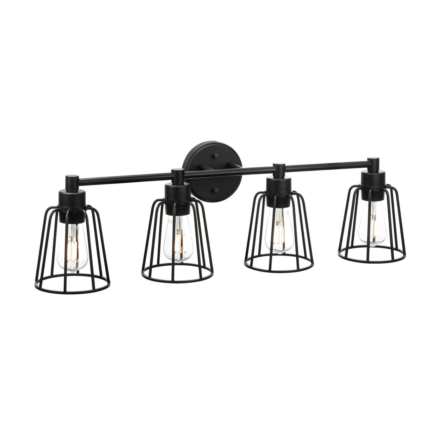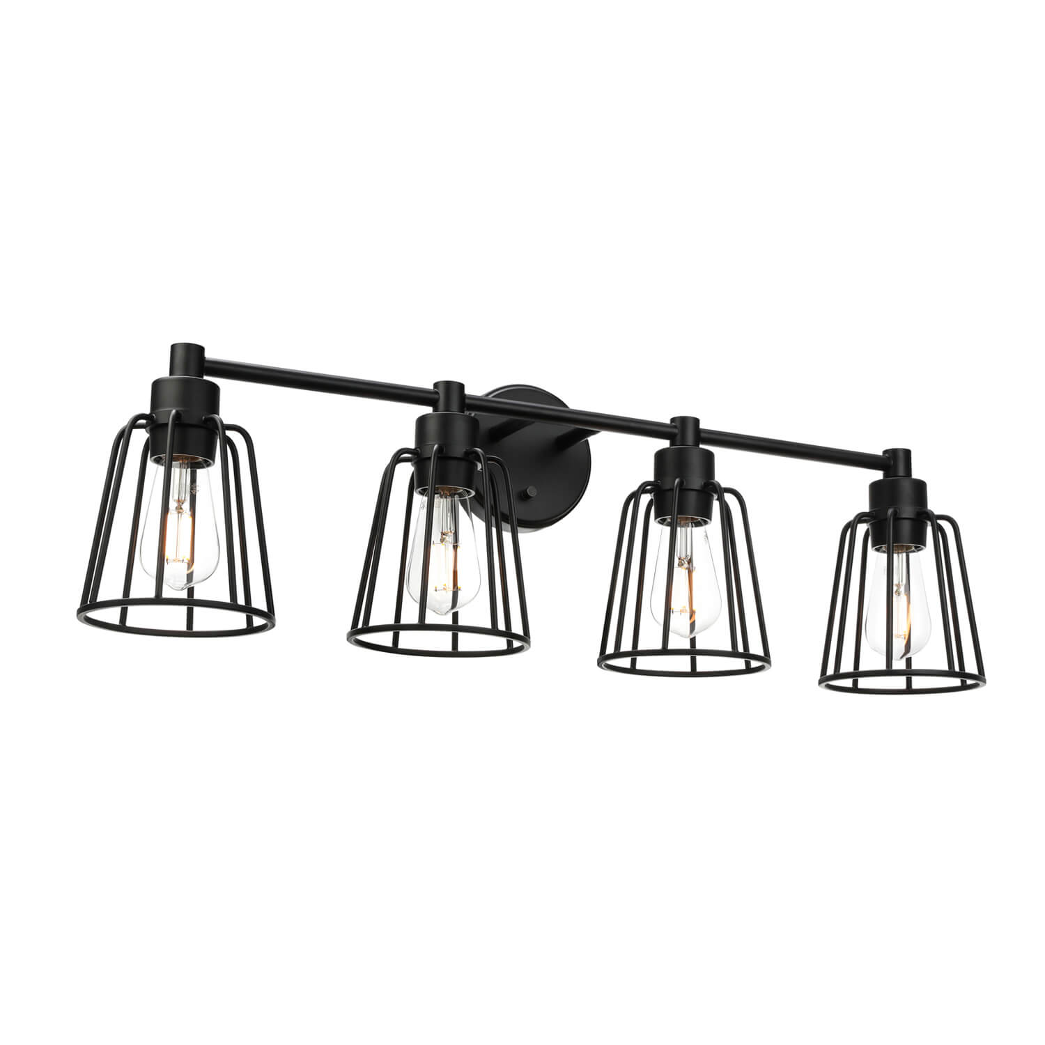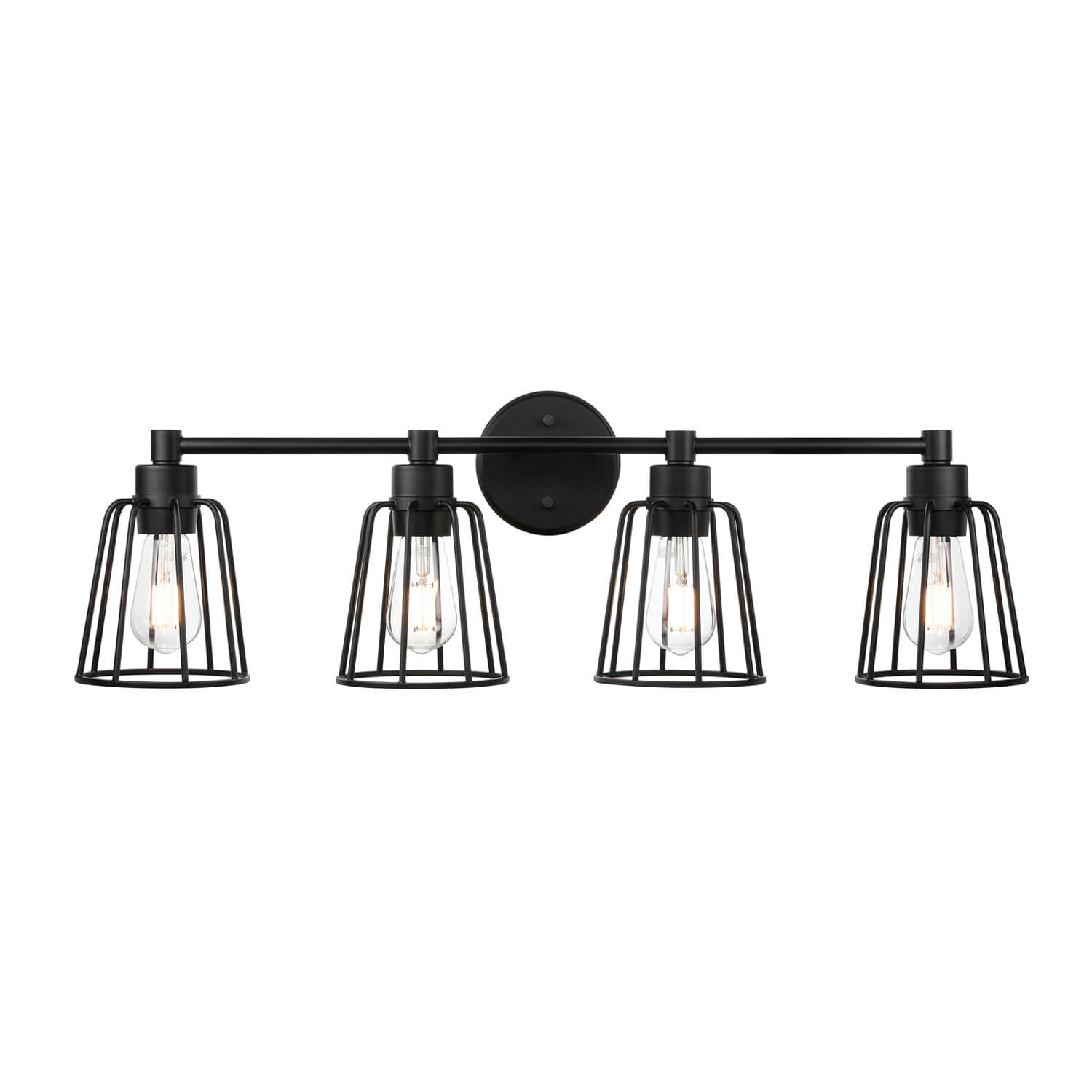 4 light bathroom vanity light with black metal cage, maximizes its light with 360° comfortable decorative glow.