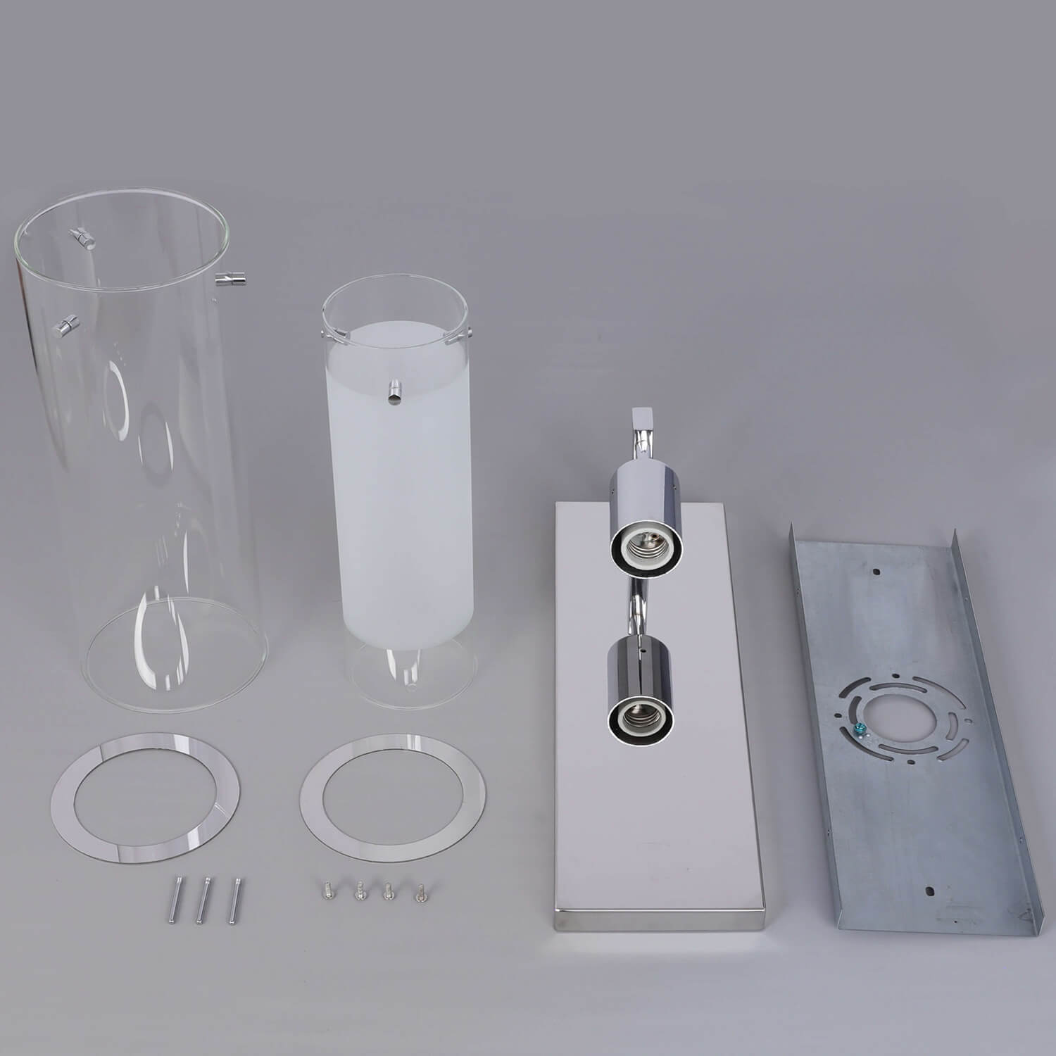 • FEATURE: Hardwired ,This chrome wall sconce with unique 2-shade design featuring both a clear glass cylinder shade and frosted glass inner shade