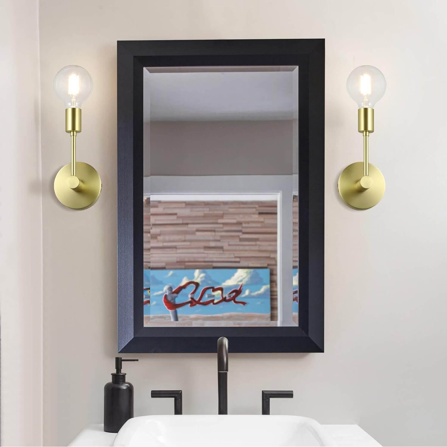 - FEATURE: Hardwired, bathroom sconces brings together a satin brass finish with a chic design that decorates your home with captivating style - Suggest to use an oversized designer bulb or a vintage Edison bulb that is perfectly curate your look.