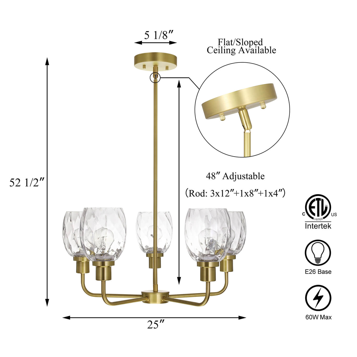 - MEDIUM BASE SOCKET: Suggest to takes five maximum 100 watt Medium base bulbs (incandescent, CFL or LED compatible). Bulbs not included.