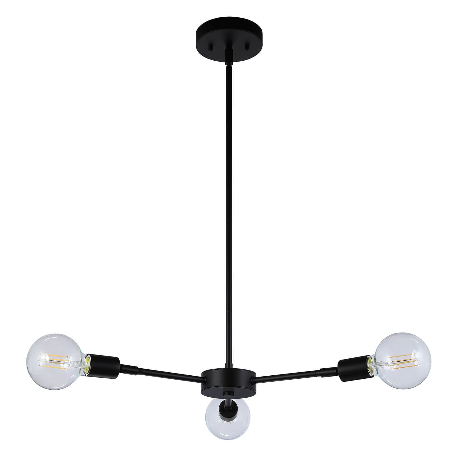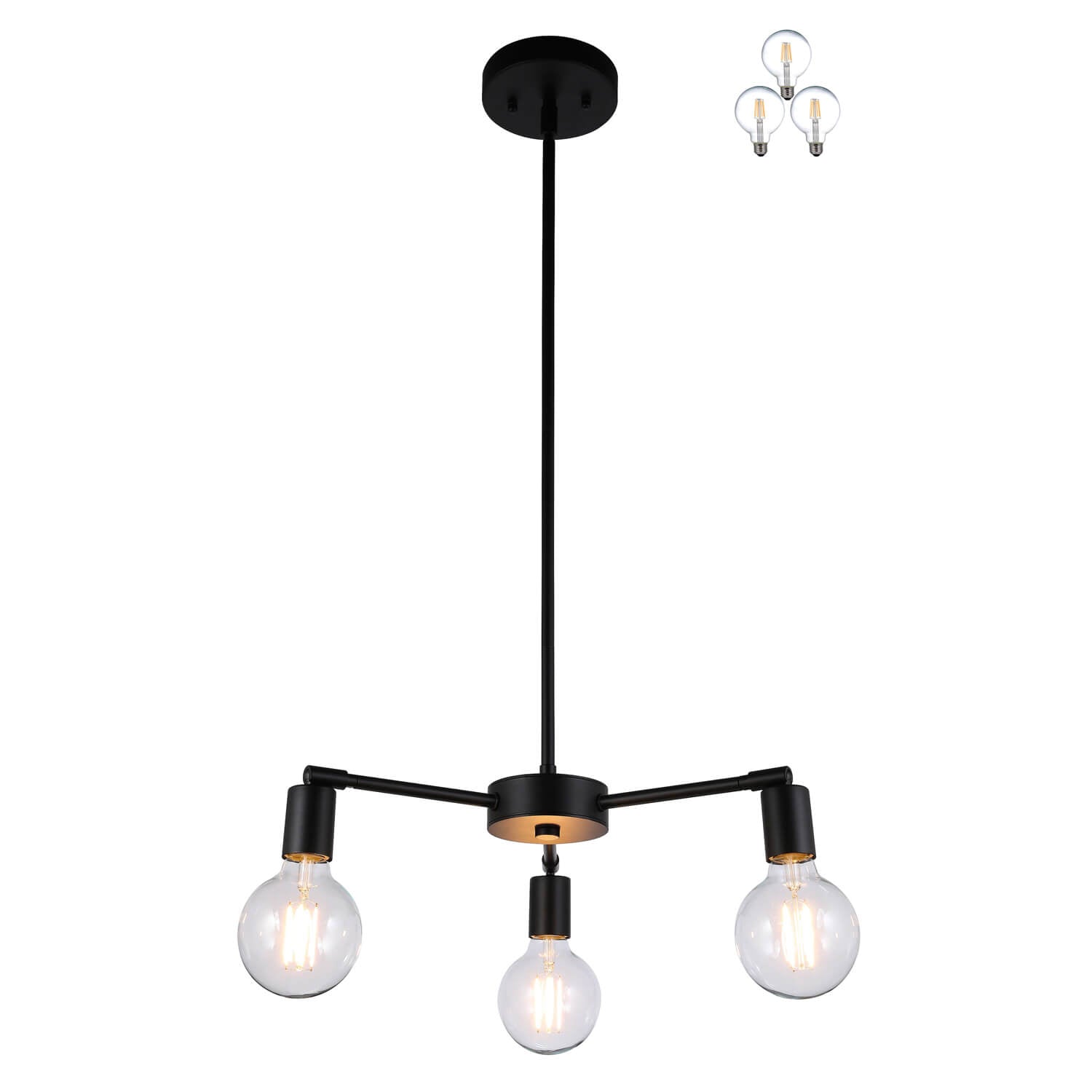 Modern 3-Light Pendant Chandelier, Matte Black with Edison Bulbs, Adjustable Arms XB-C1211-3-MBK