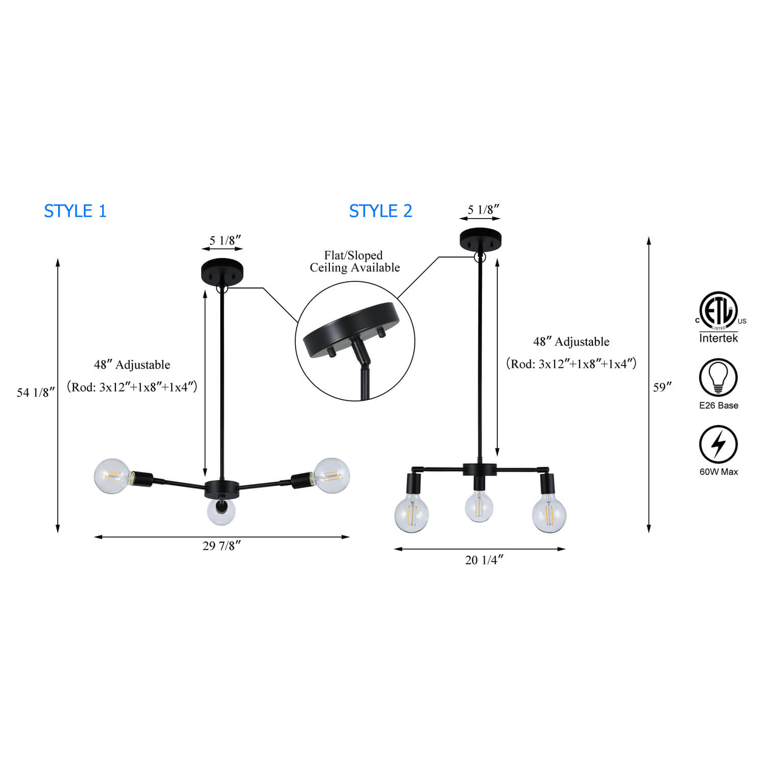 - FEATURE: Chandeliers with Bare bulb design in Matt Black finish and with adjustable swivel lamp cup, allowing for some play with light placement; Which can be offered dramatically different looks by adjust the bulb down or horizon.