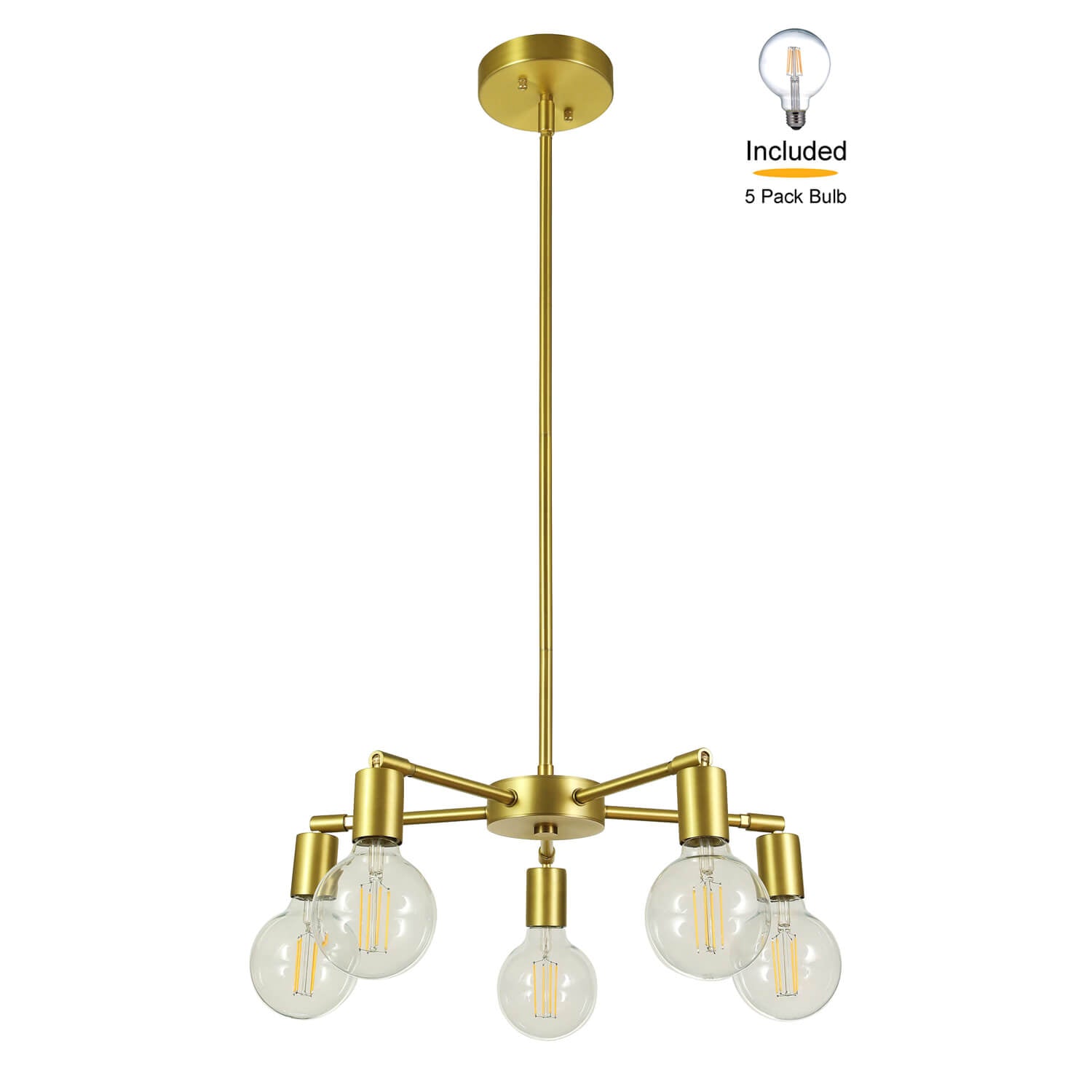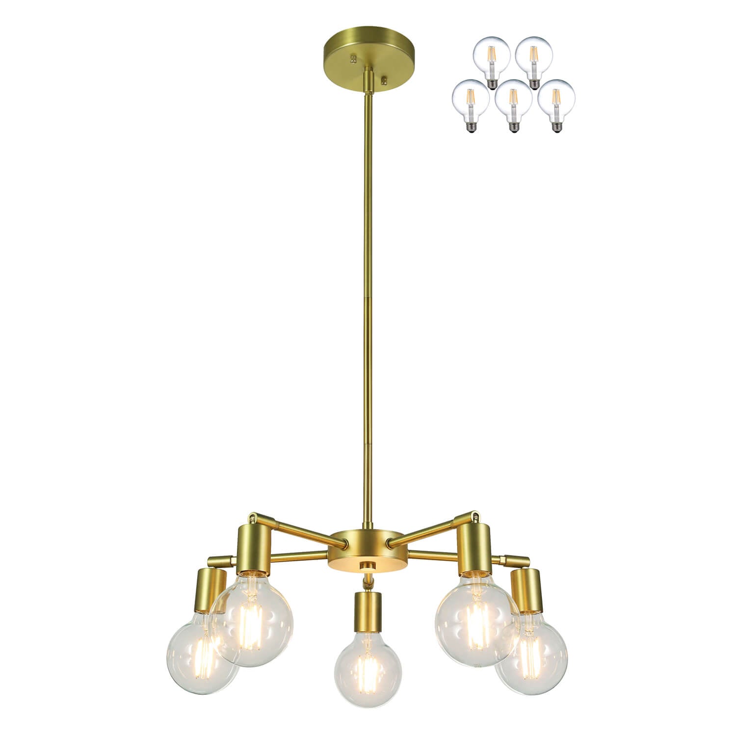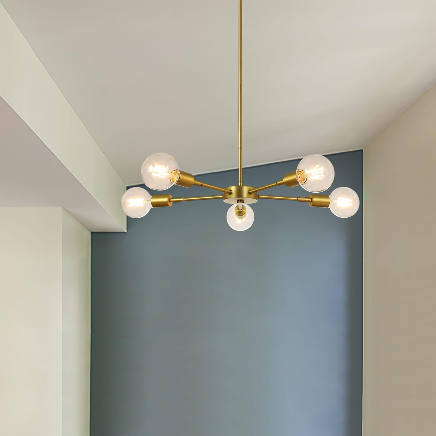 Sputnik Chandelier, 5-Light Brass Pendant with LED Bulbs, Kitchen Dining Room Light XB-C1211-5-SB