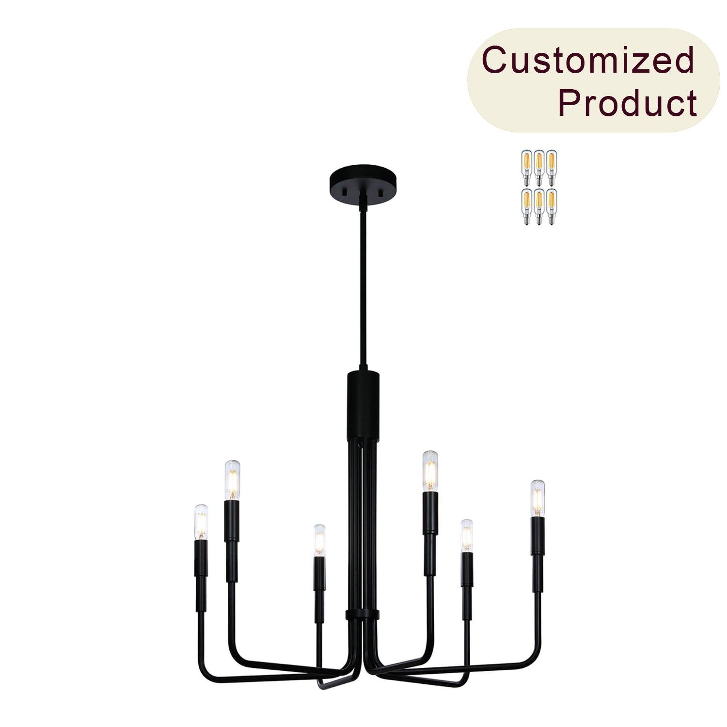 - MODERN DESIGN: Chandeliers with sleek metal in Matt Black finish with E12 candle base. 6 Light chandelier light is in modern and farmhouse design allows for maximum lighting create, the perfect accent light for kitchen, island, living room, dining room, bedroom and hallway.
