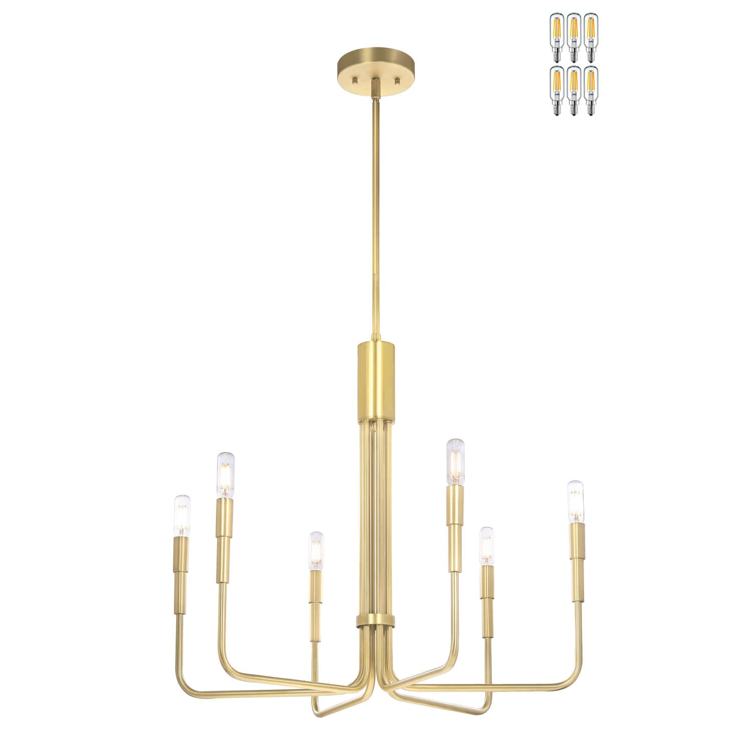 - E12 BASE SOCKET: This chandelier comes with 6pcs T8 LED Edison bulbs. It can be dimmable when used with compatible ELV dimmer.