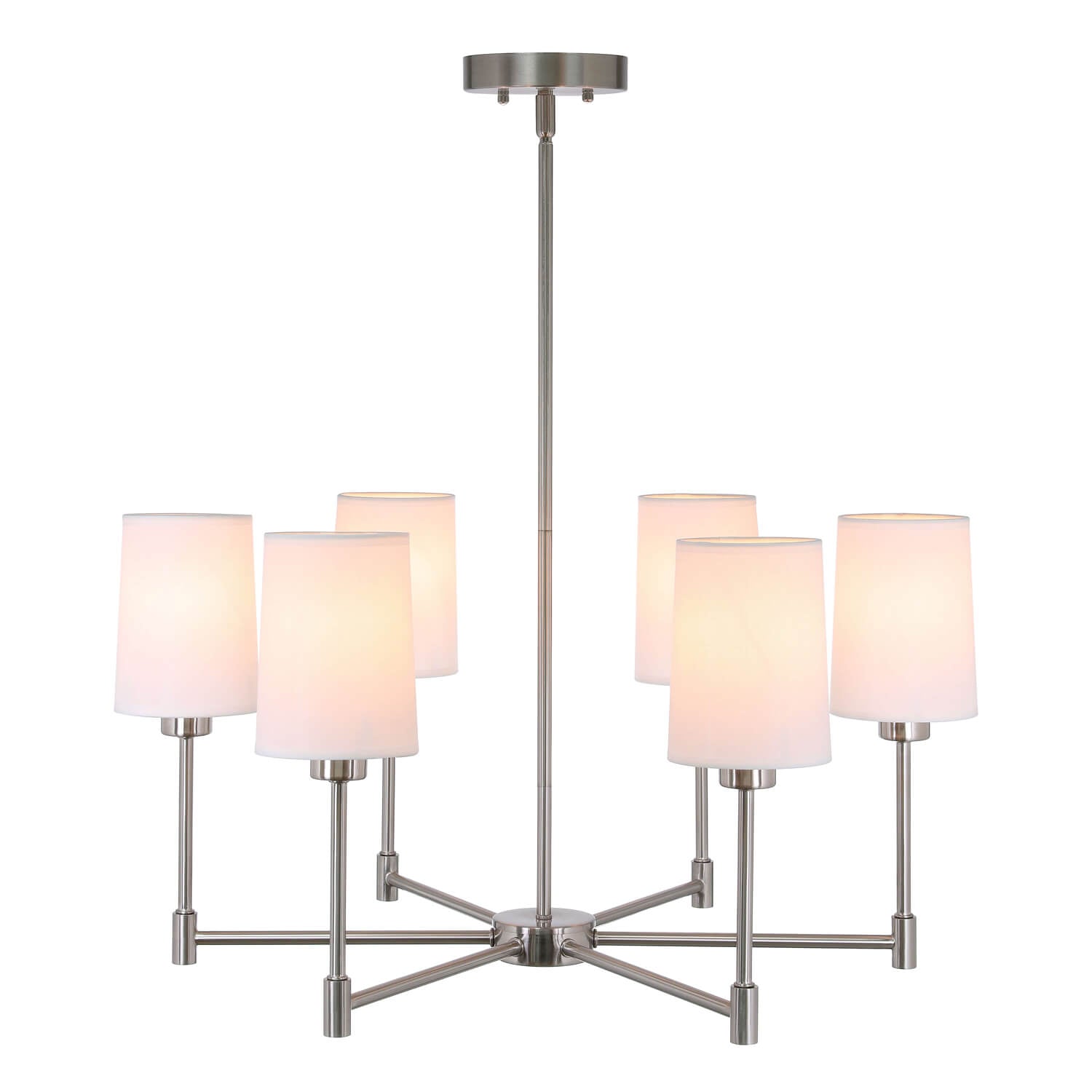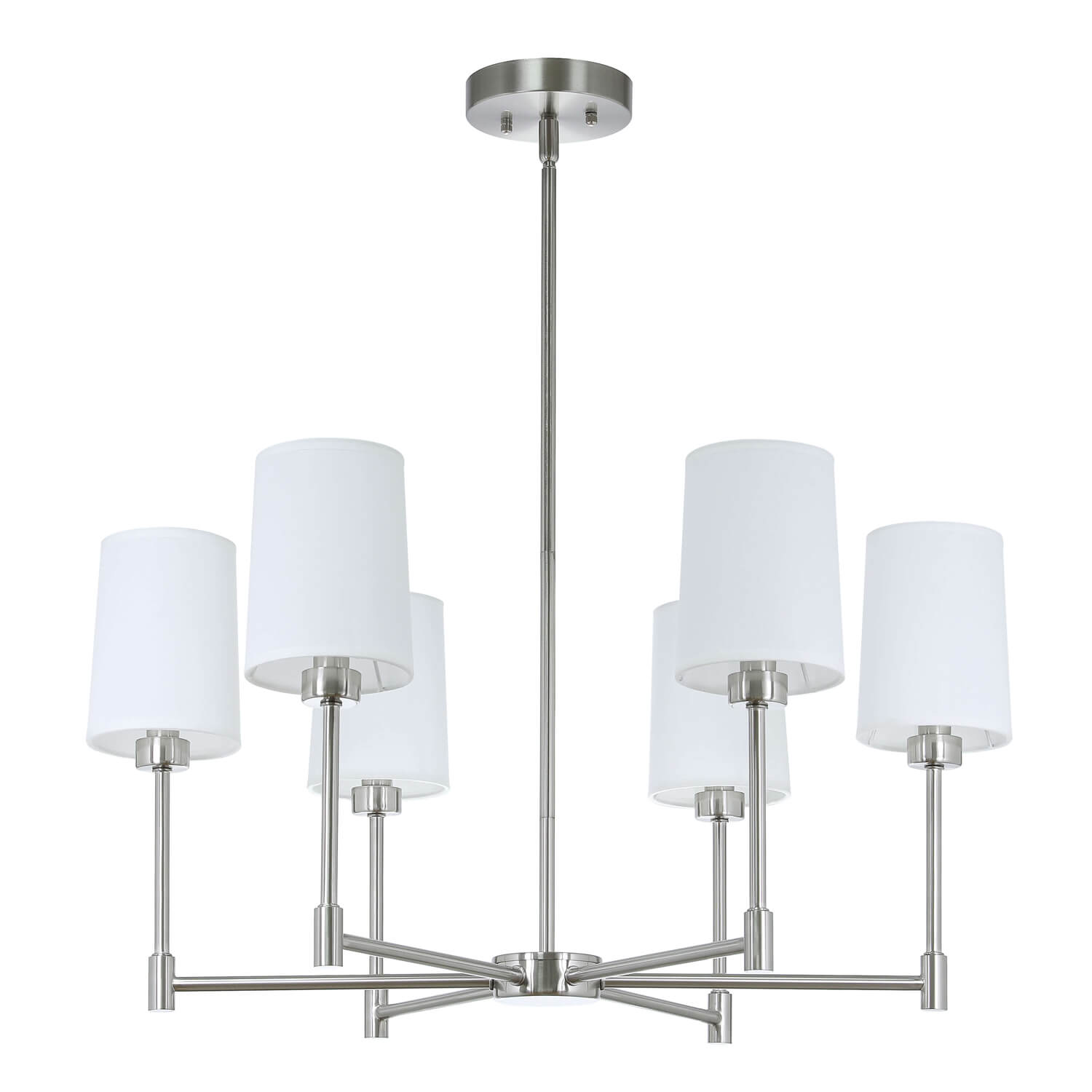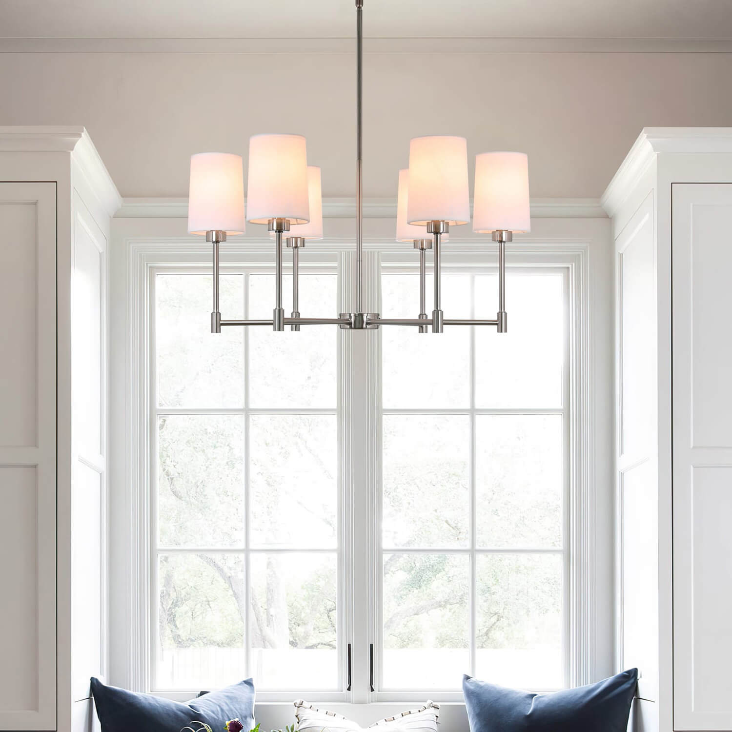 6-Light Chandelier, Fabric Shade, Brushed Nickel, Living Dining Room Pendant Light XB-C1215-6-BN