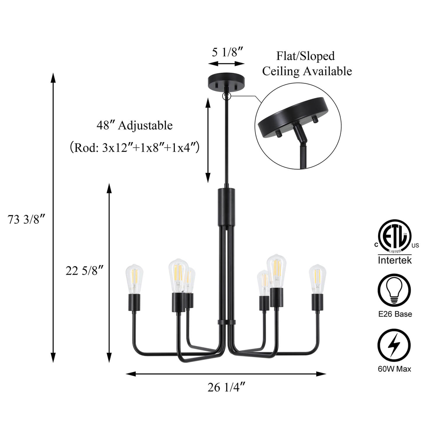- VINTAGE DESIGN: 6 Light chandeliers is a simple design with black slim metal, geometric beauty and delicate sense. This black vintage chandelier light is perfect for your kitchen Island, dining room, living room, bedroom, foyer, entryway.