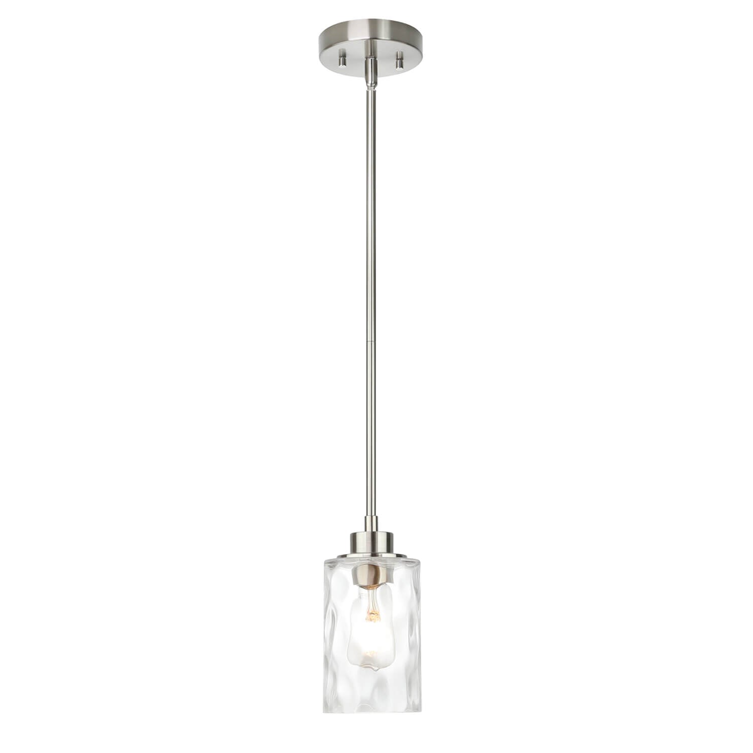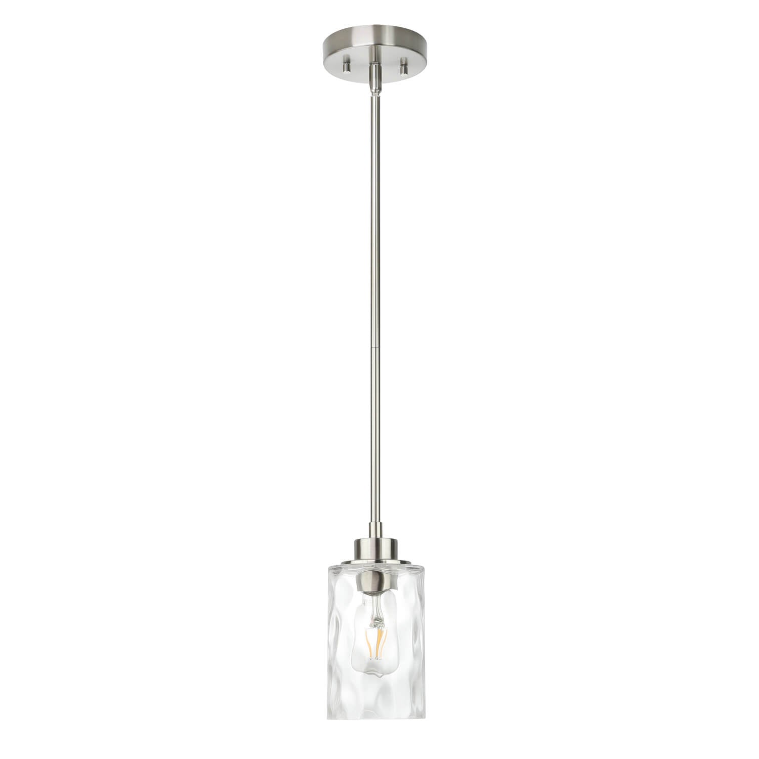 Modern Mini Pendant Light with Clear Hammered Glass Shade, Brushed Nickel XB-P1227-BN