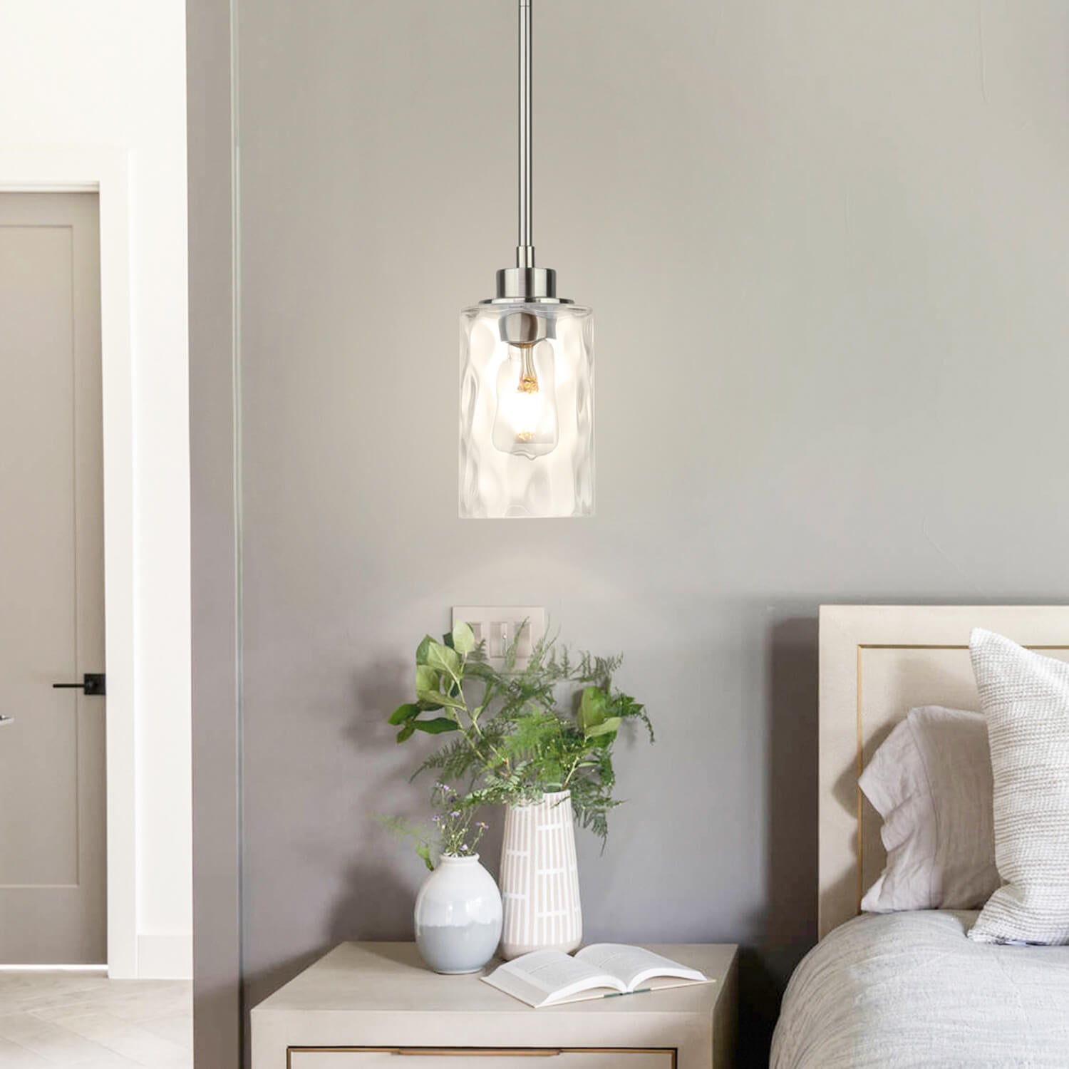 - MODER DESIGN: Mini Pendant light fixture with clear glass shade in brushed nickel is in a simplistic design that is an elegant update for traditional and modern homes atmosphere. 1 light glass pendant lighting works well in many different styles of decor including traditional, transitional, beach style or contemporary, and is perfect as a single pendant or displayed in groups.