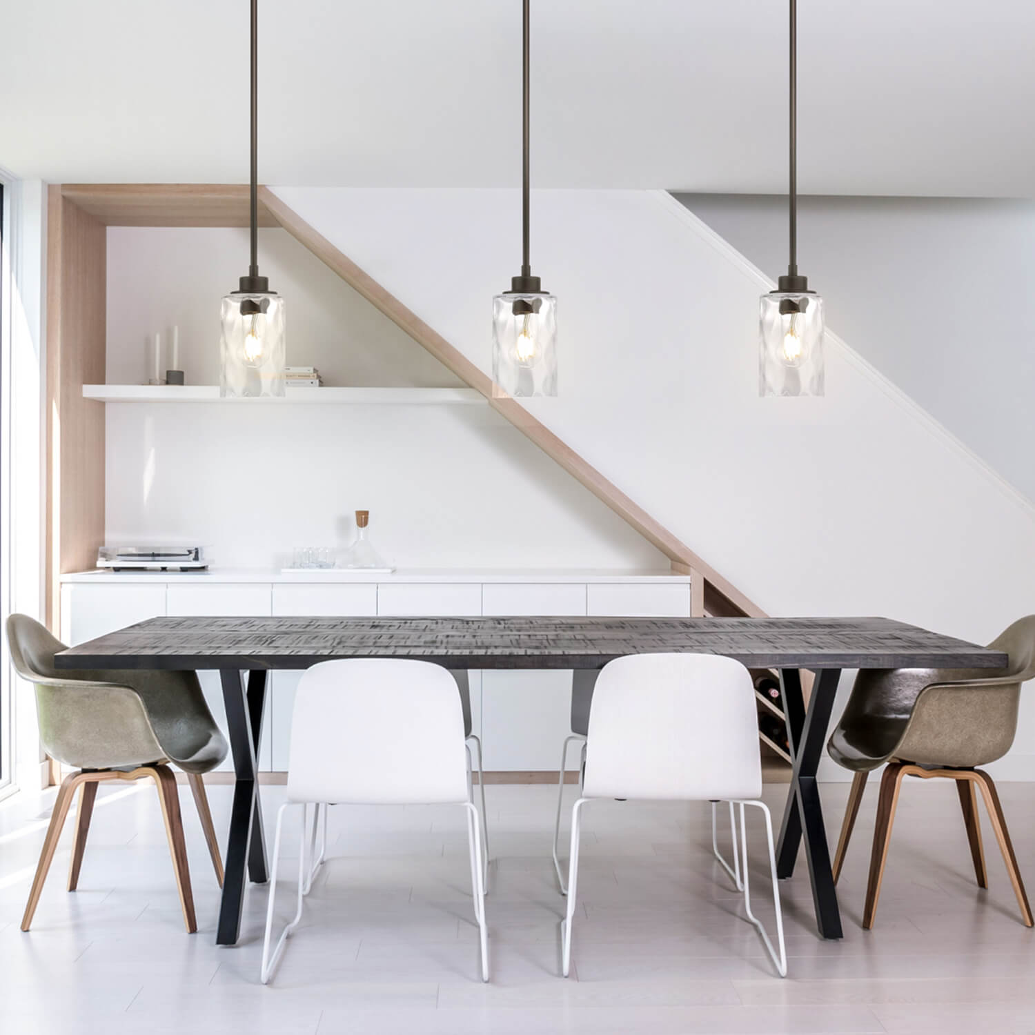 Kitchen pendant light with water ripple glass shade refracts the light, creating a sparkling crystal clear romantic atmosphere when lights are on.