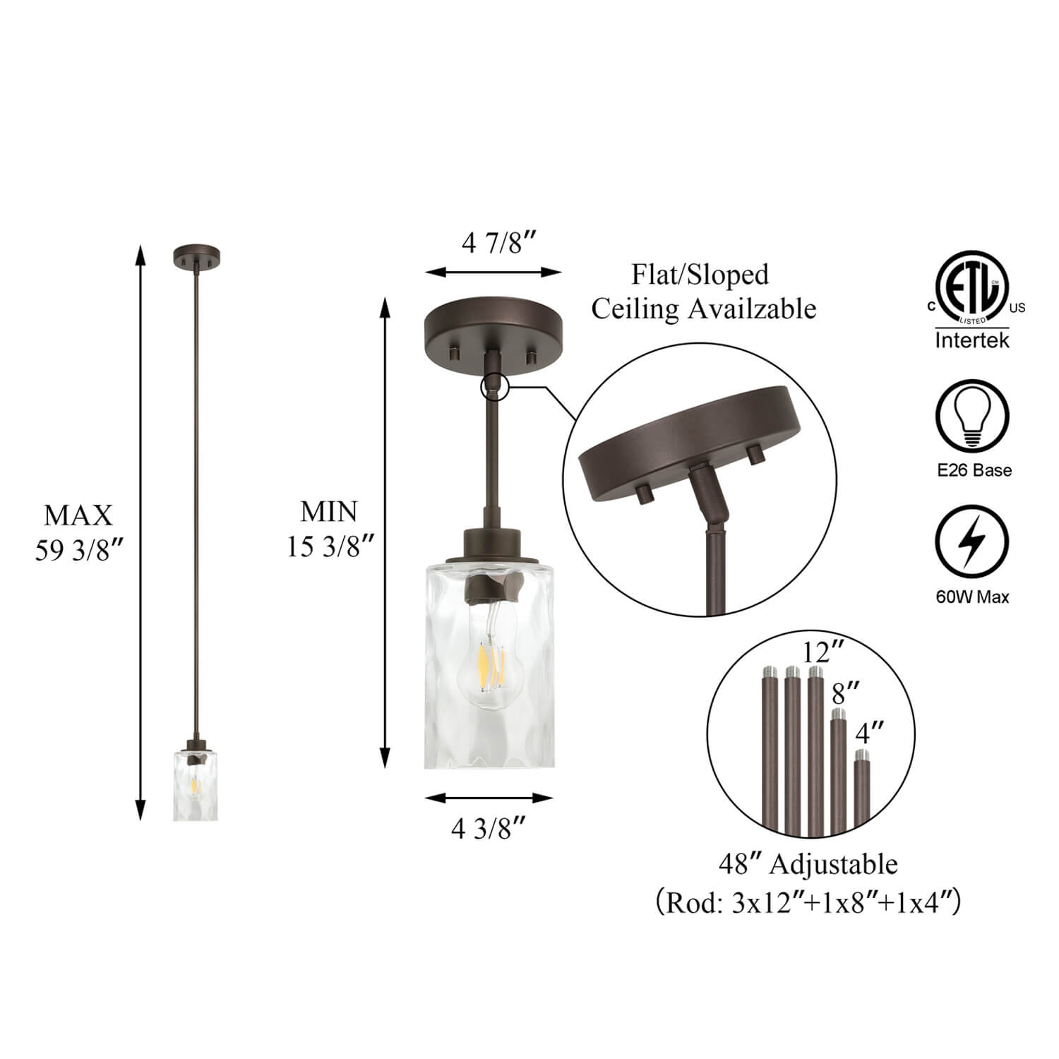 - FEATURE: Hardwired. Adjustable kitchen hanging ceiling light comes with adjustable hard stems (3x12" + 1x8" + 1x4") for customizable length and height that can be adjusted based on the installation area.