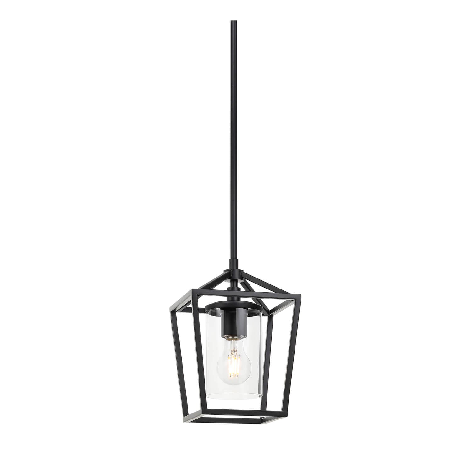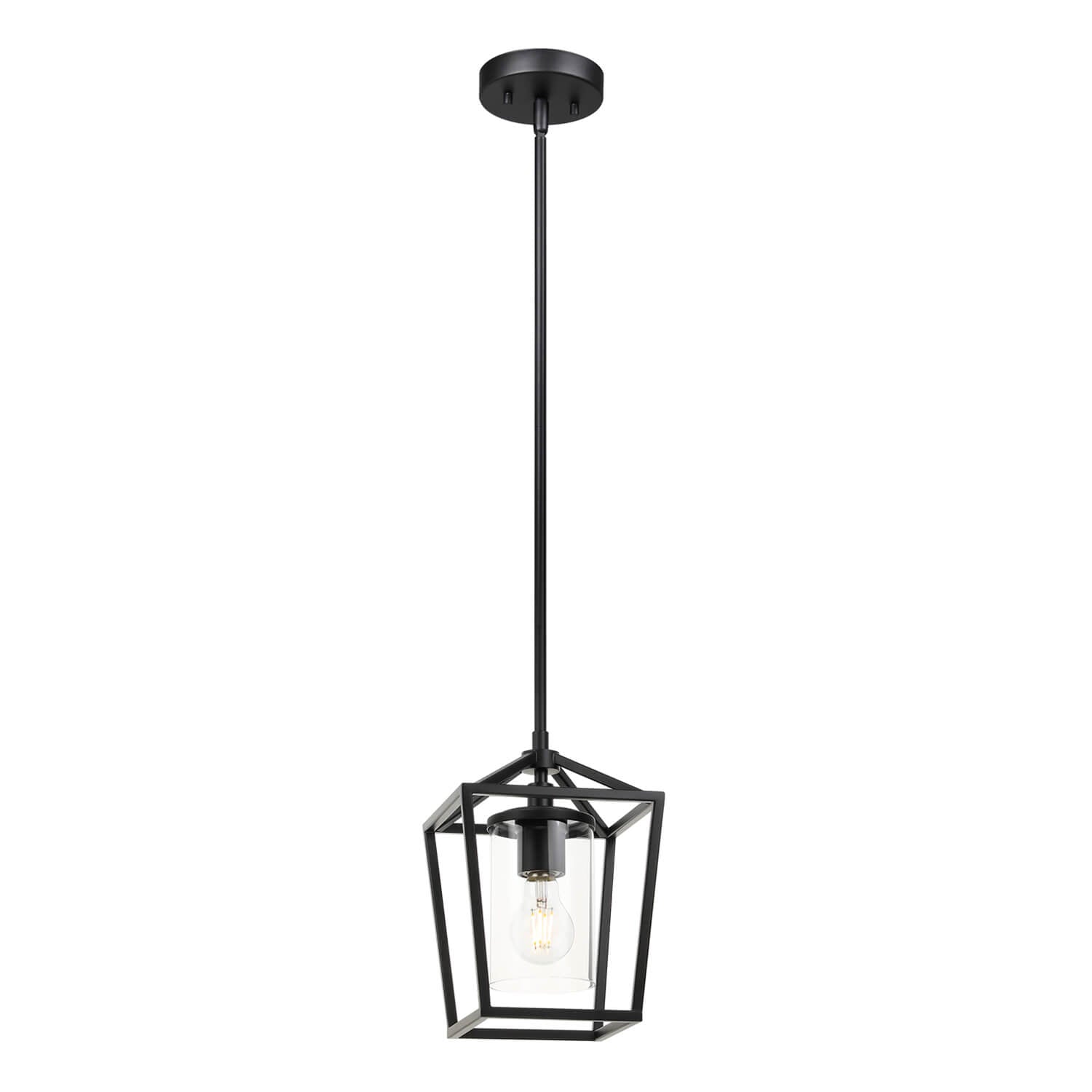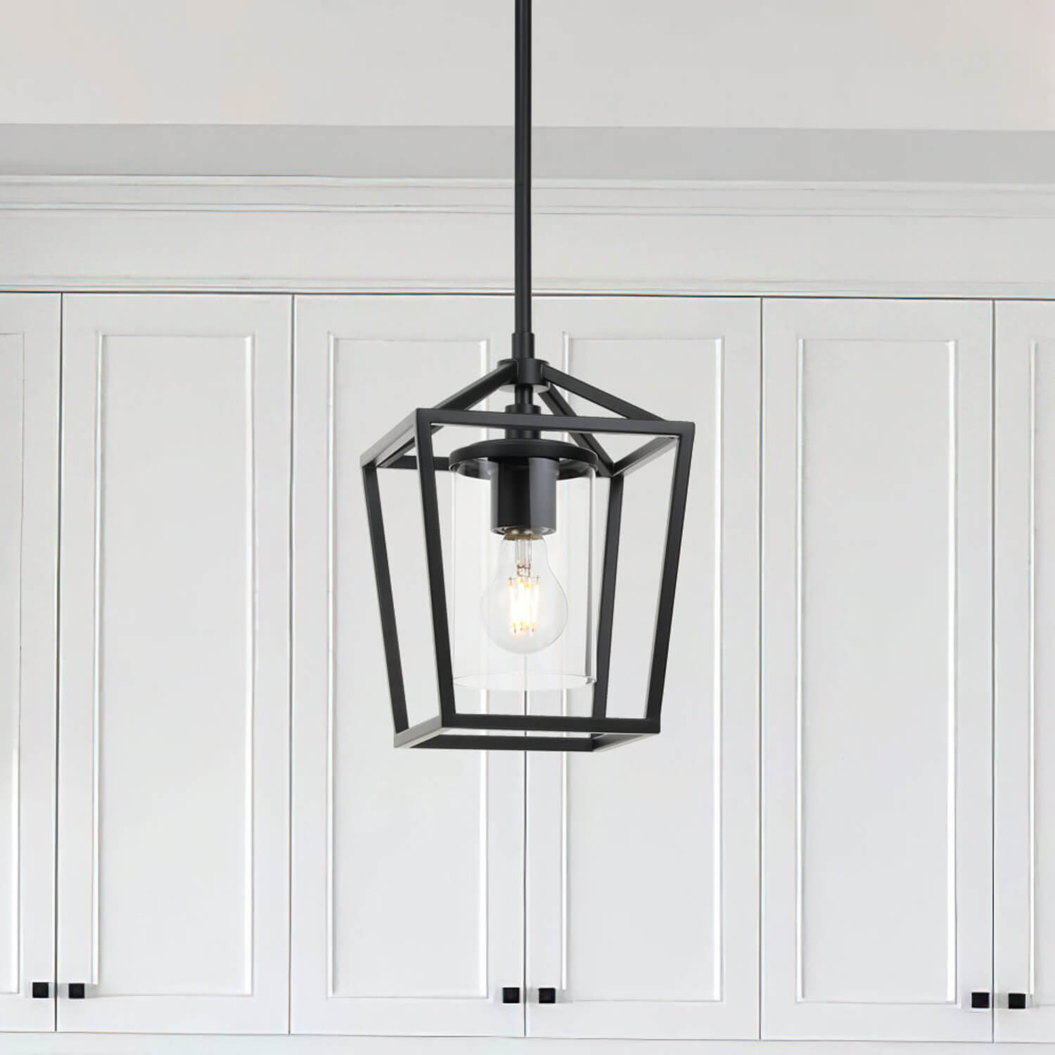- FEATURE: Black Pendant lighting with clear glass and durable iron lantern cage and various rods in matte black finish are commonly used as general lighting in the center of a bedroom, kitchen, living room, hallway etc. This 1 light pendant light is suitable for most home decorative styles and it can provide more lighting when installed on a kitchen island or dining table.