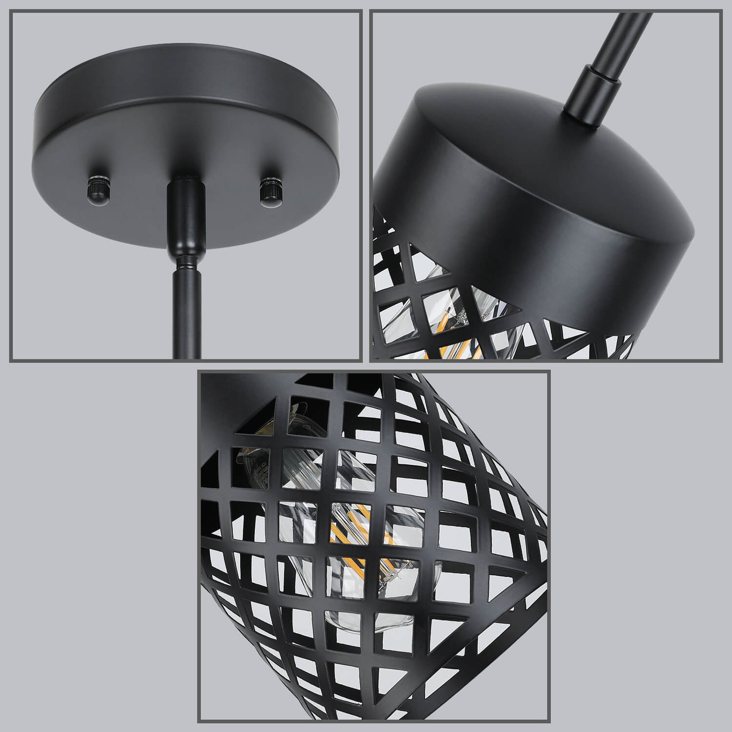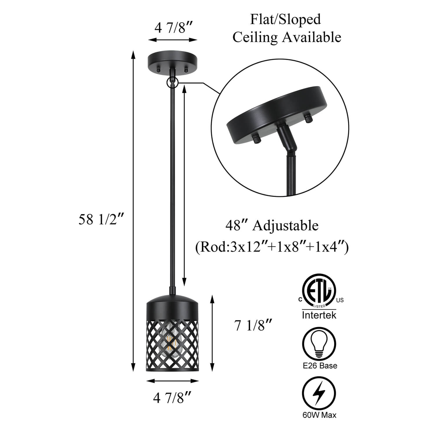 Farmhouse pendant lighting features a uniquely designed metal wire cage, 5pcs of rods and mounting canopy are all made with a matte black finish,