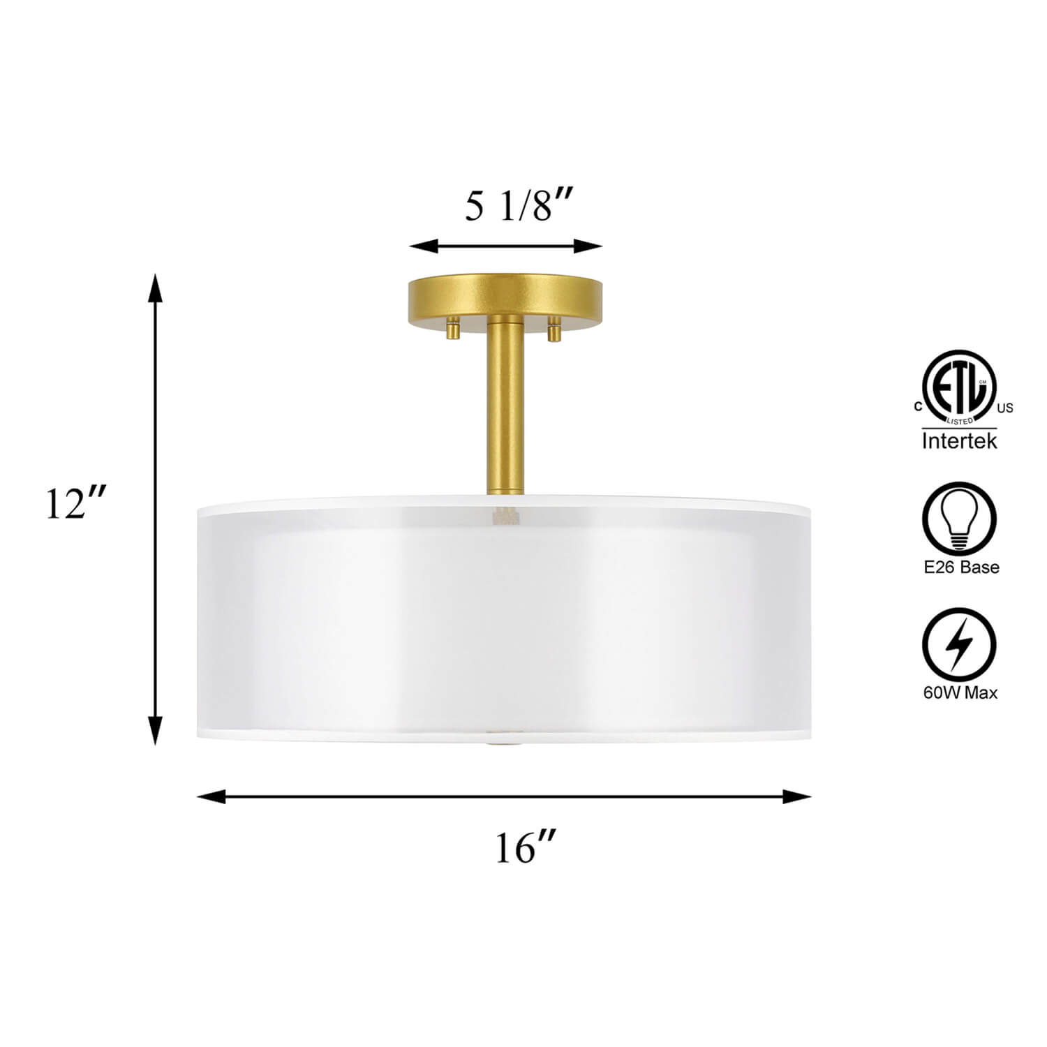 16 inch Gold Brass Drum Semi Flush Mount for Living Room & Bedroom XB-SF1194-GB