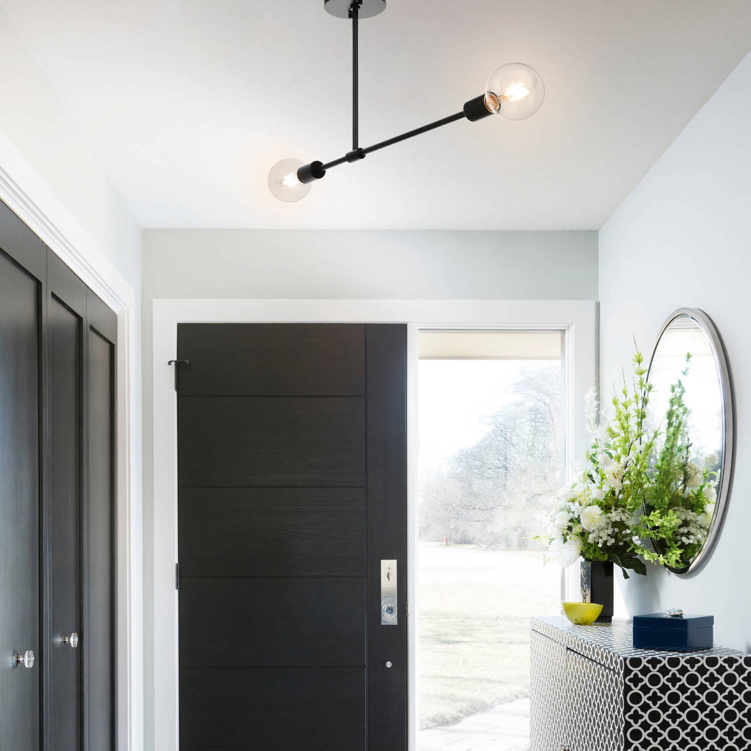 This 2 Light semi flush mount ceiling light in black finish features solid hardware in a simple, clean but modern style.