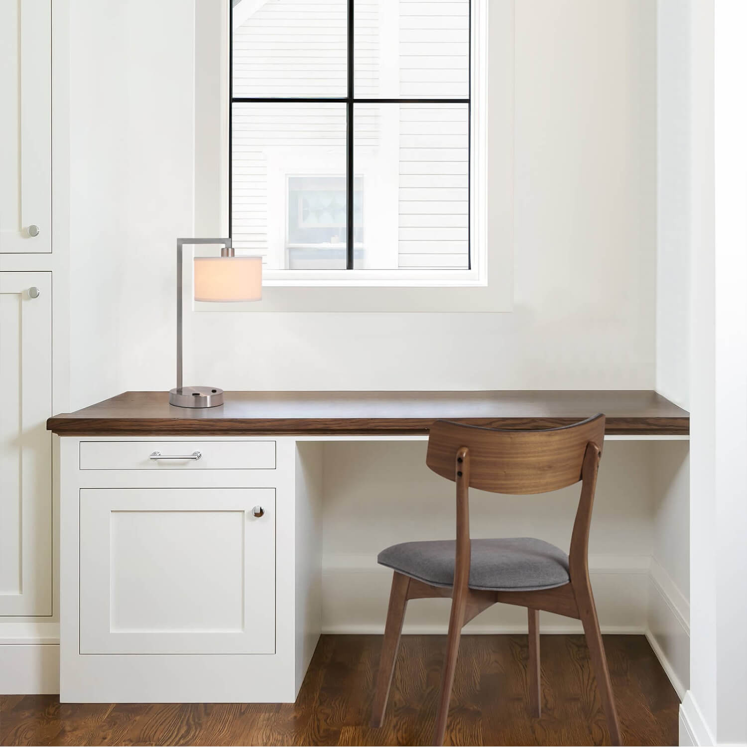 - MODERN DESIGN: Desk Lamp with square tube in Brushed Nickel and white fabric shade looks a warm welcoming environment in any of your livings spaces.