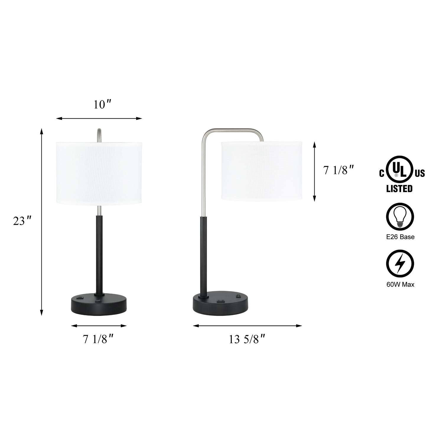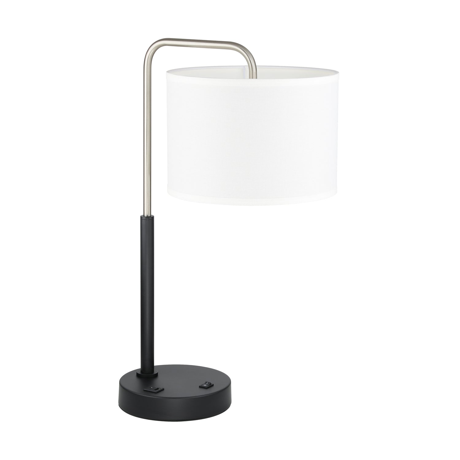 This brushed nickel & matte black table lamp comes with a built-in USB port and power outlet on the base that make it easy for you to charge your various devices.