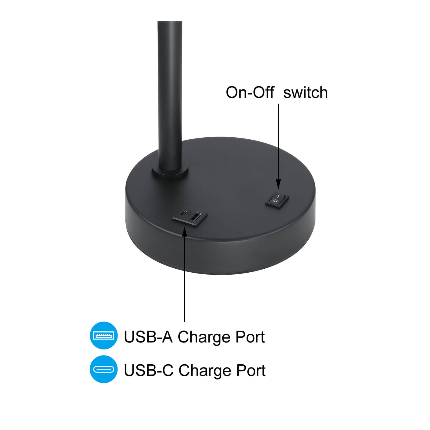 - MODERN DESIGN: Modern nightstand reading lamp with USB charging port and On-off switch on the lamp base, convenient to charge your electronic devices. Includes 6-foot long cord and plug.