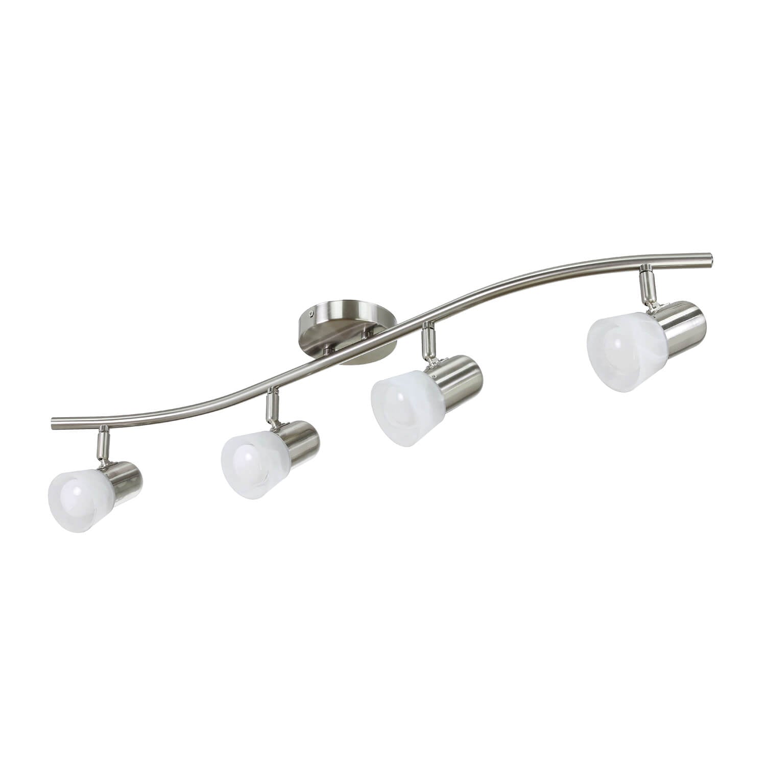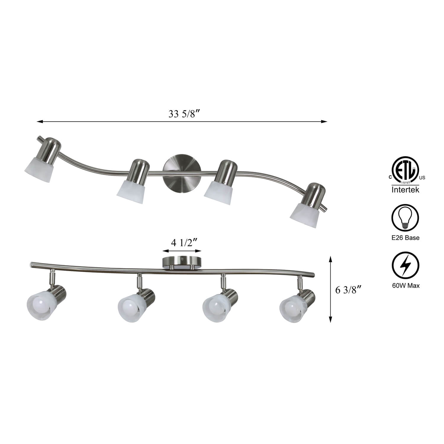 - FEATURE: Hardwired, track lighting with alabaster glass in brushed nickel finish; 4 light track light with adjustable track heads that is flexibility in how you want the lights to shine with extending and swiveling as needed and it is perfect for highlighting a work space or drawing attention to special objects.