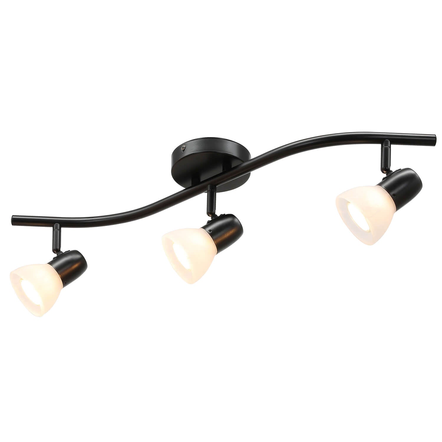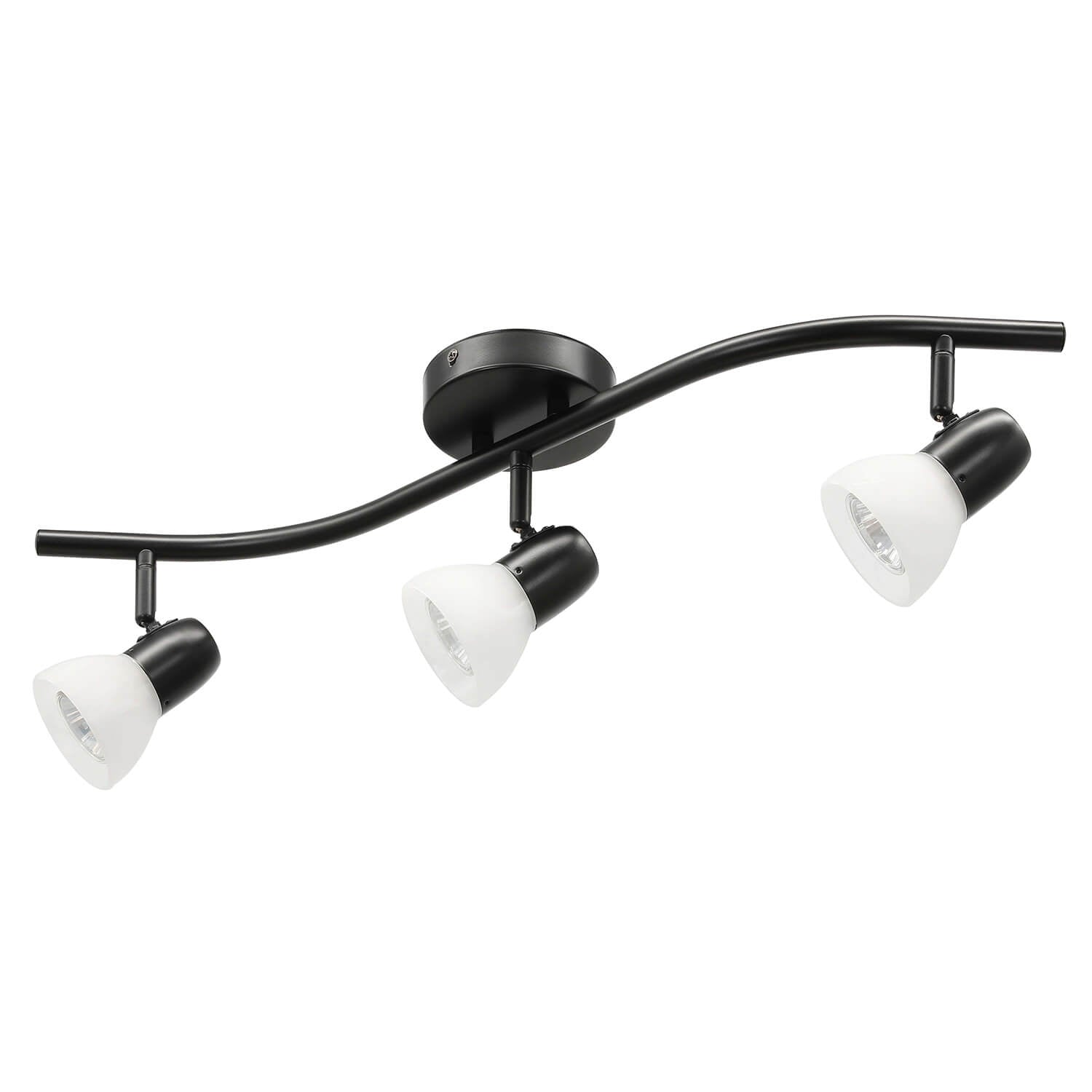 - MODERN DESIGN: Hardwired product. 3 light black track ceiling light with glass in curved shaped tube is simple design and this track light bar has strong and focused beam that is perfect for kitchen, bathrooms, bedrooms, entryways, kitchen, dinning and living areas