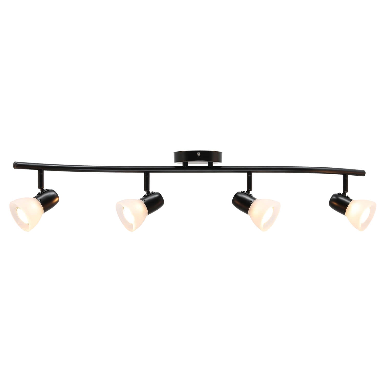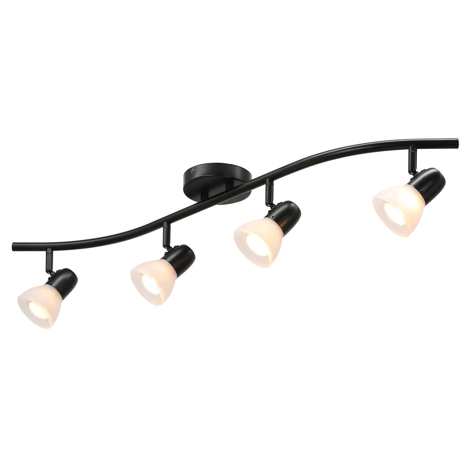 - MODERN DESIGN: Hardwired product. 4 light black track ceiling light fixtures with glass in curved shaped tube is simple design and this Complete track lighting kits has strong and focused beam that is perfect for kitchen, bathrooms, bedrooms, entryways, kitchen, dinning and living areas