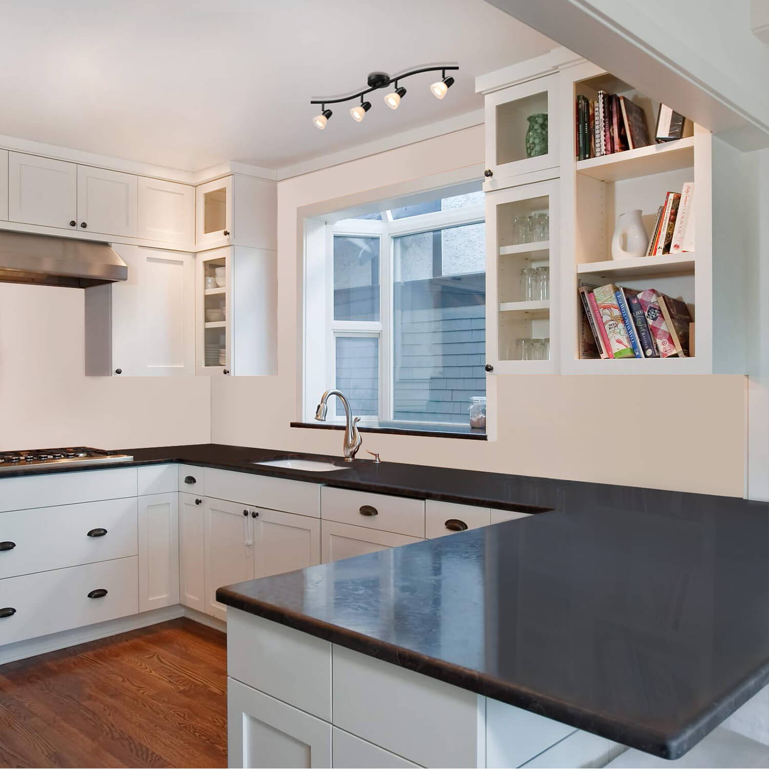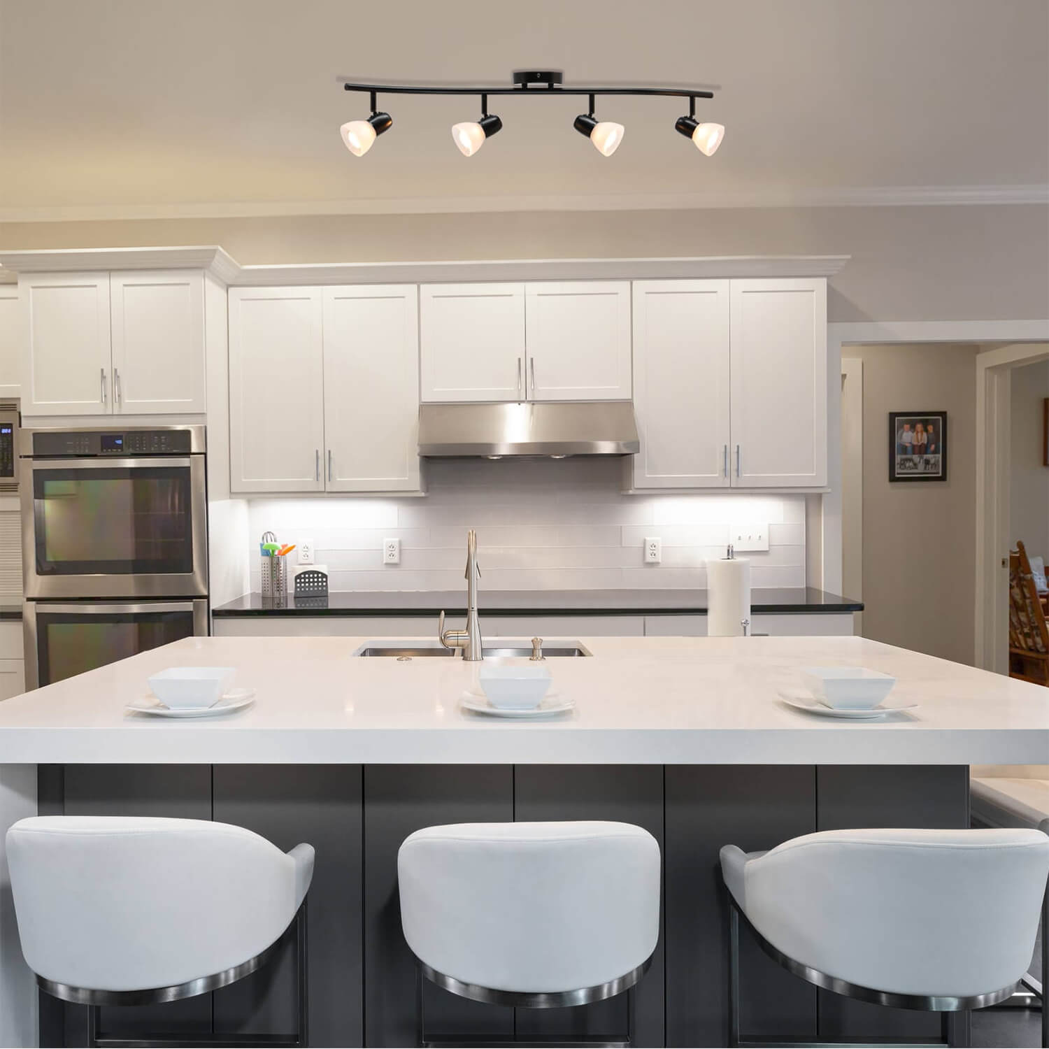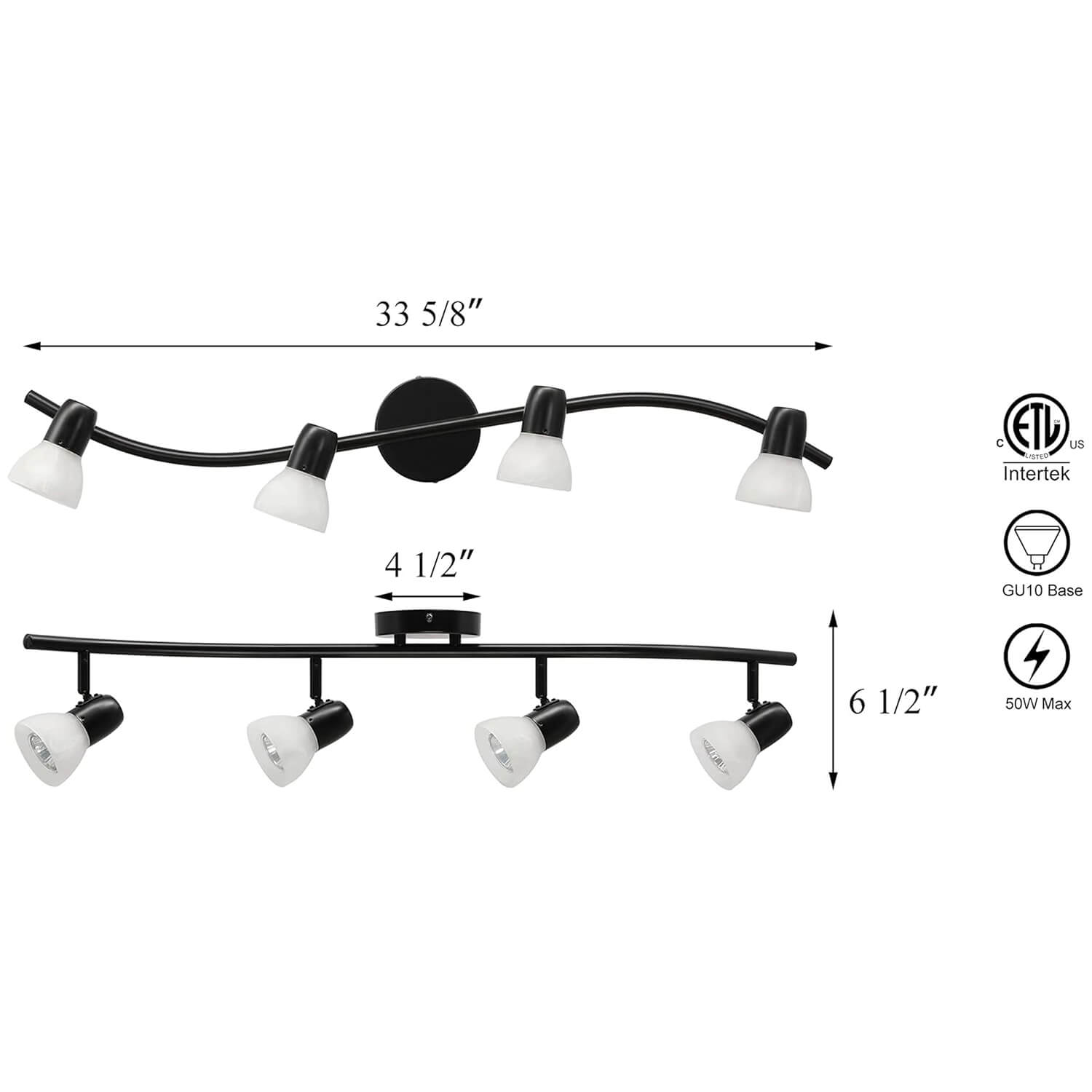 - FEATURE: Hardwired, track lighting with alabaster glass with adjustable track heads in matte black finish; of which is perfect for highlighting a work space or drawing attention to special objects. Mounting this kitchen track light will create an accenting an art wall, or simply adding ambient illumination to a living space.