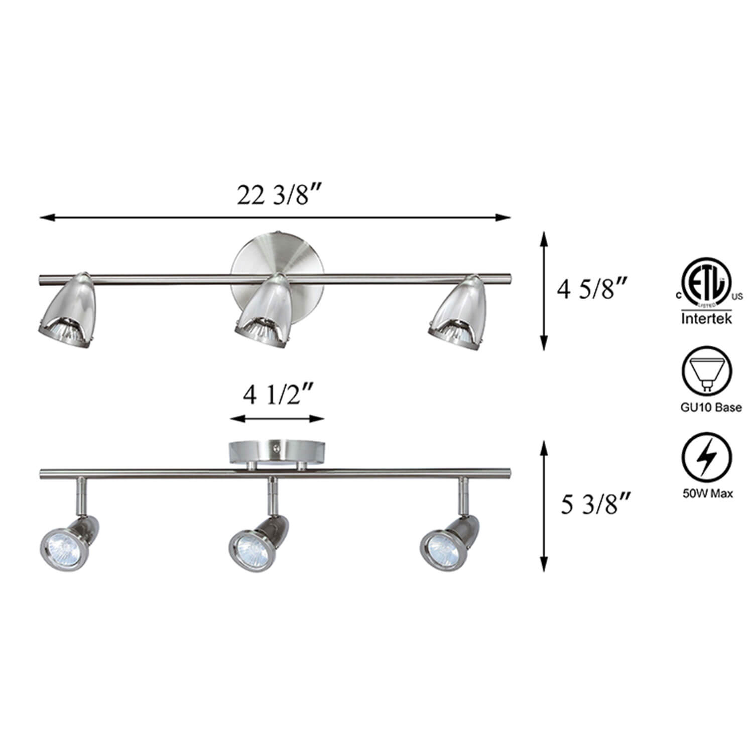 - FEATURE: Hardwired, Track lighting has an modern but simple design, the straight line of the track bar light pairs with the metal cup construction and is finished off with a brushed nickel to complete the perfect minimalist design. 3 light track light is with adjustable track heads, of which is perfect for highlighting a work space or drawing attention to special objects