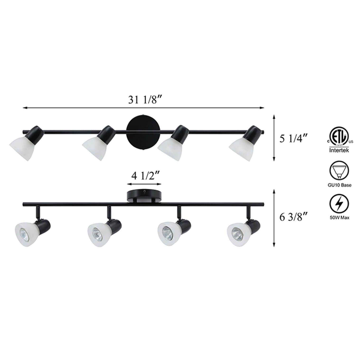 - FEATURE: Hardwired, track light with adjustable halogen lights and matte black finish that will accent your modern decor. Track bar lighting with adjustable track heads allow you to use this track lighting in a variety of different ways and these multifunctional lights work great as directional accent lighting and task lighting.