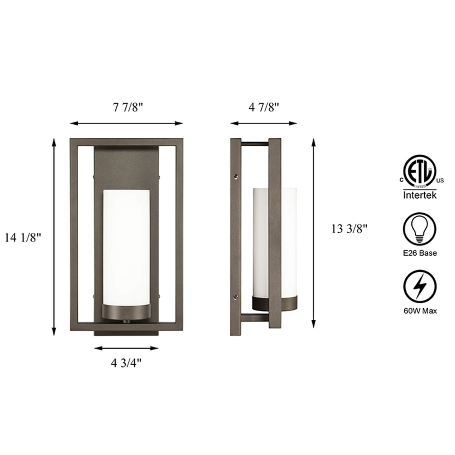 • MODERN DESIGN: Sconces wall lighting features with the fixed wall mounted design with a durable iron body in dark bronzed finish. This dark bronzed wall sconce with rectangle iron frame and backplate and white glass shade diffuses a cozy glow for an inviting feel and offers a modern & vintage style while complementing your home decor.