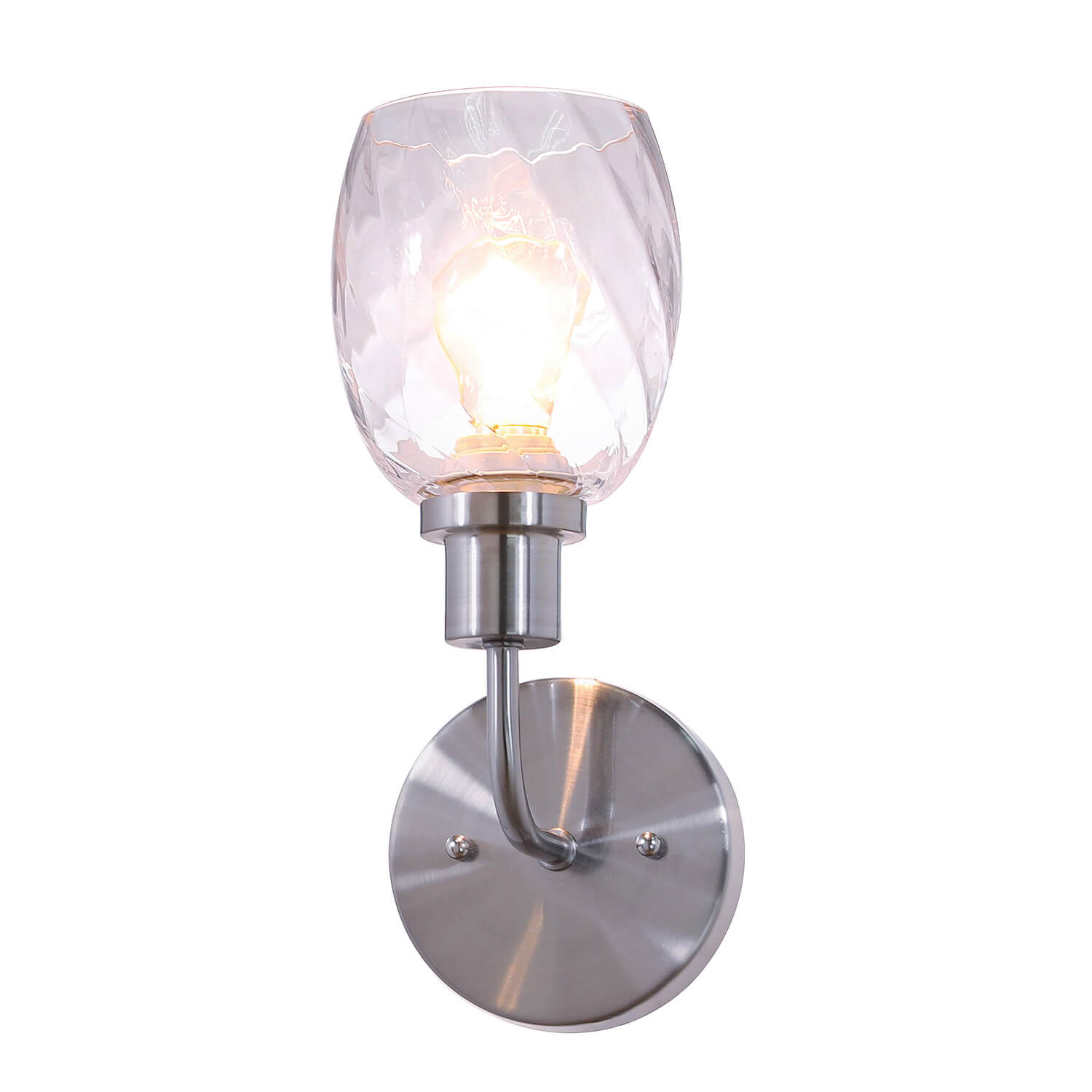 - FEATURE: Hardwired, brushed nickel wall sconce with clear faceted glass ; bahtroom sconce lighting is with simple design and easy to install