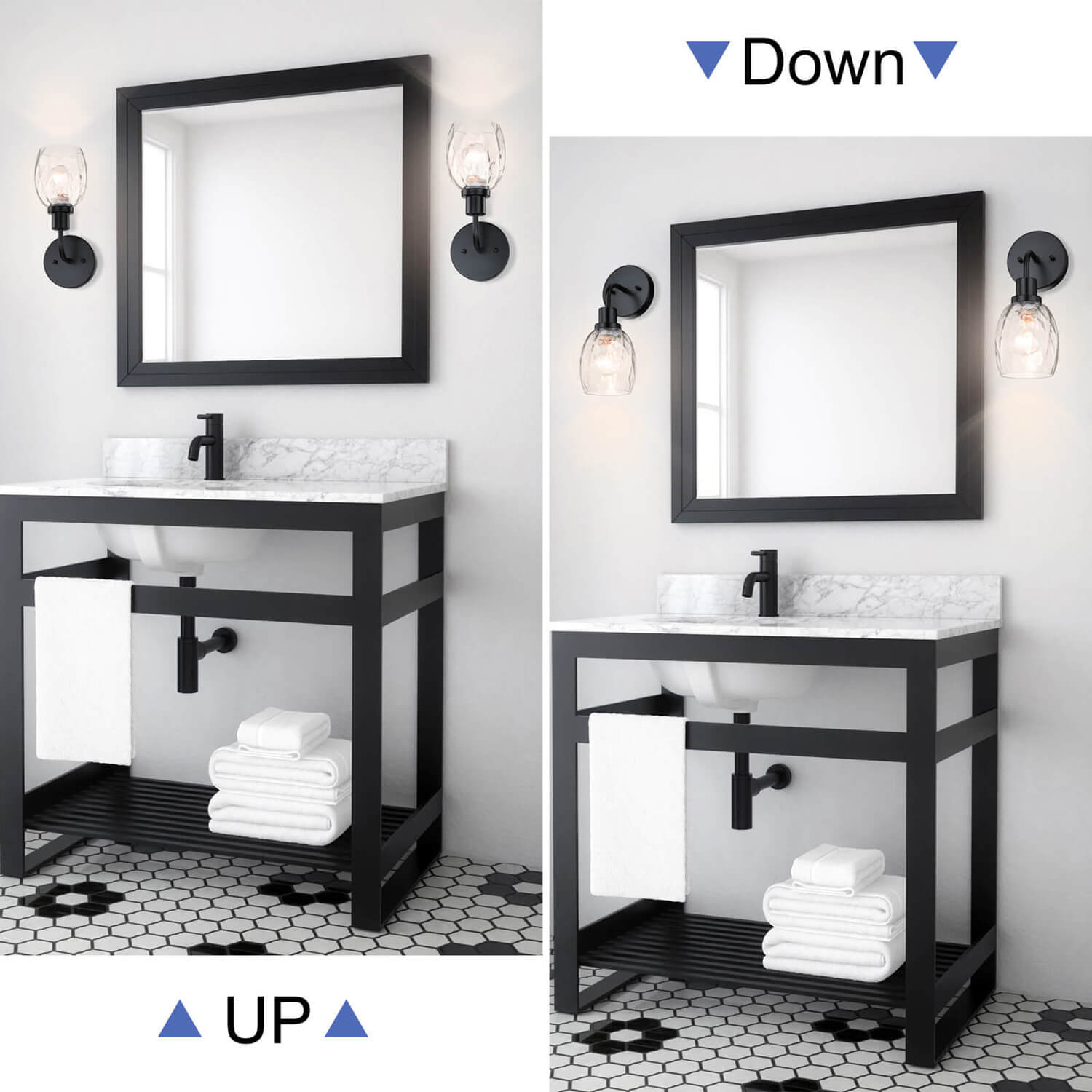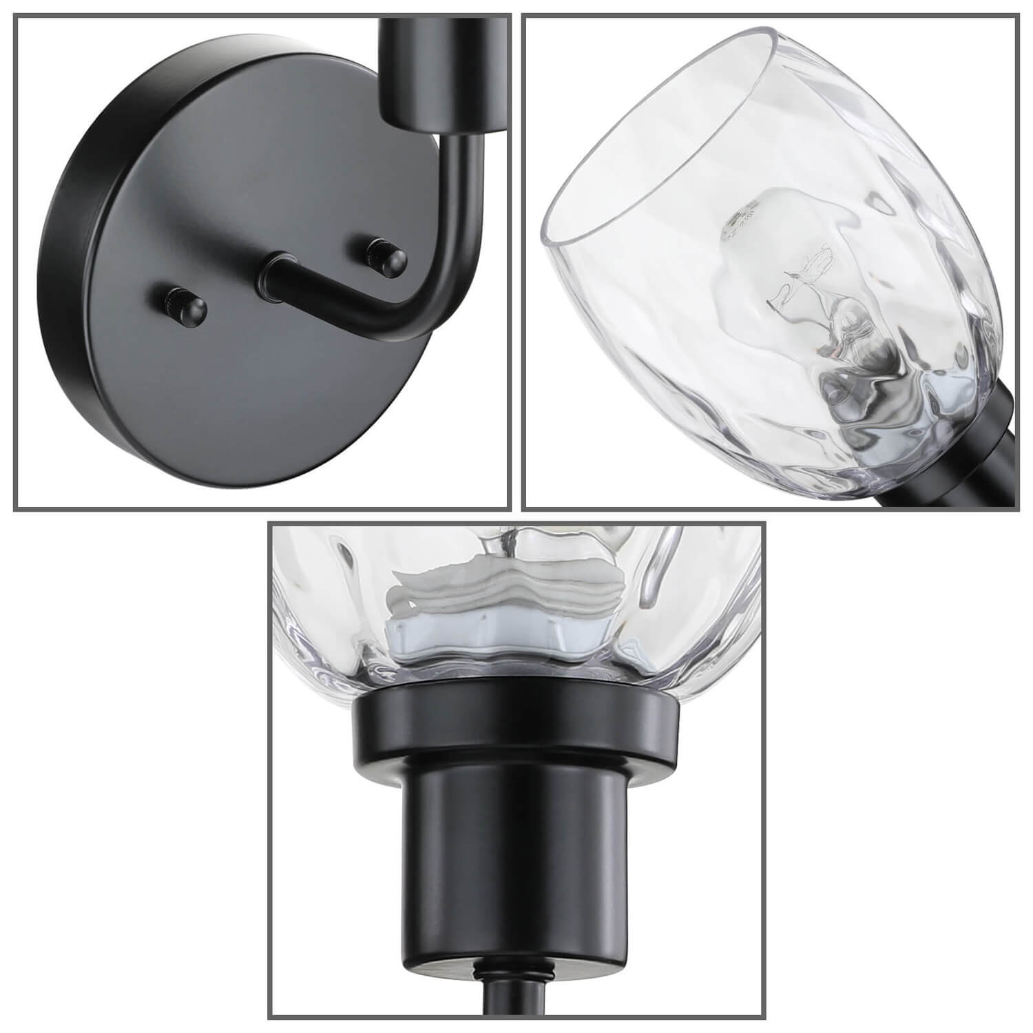 - FEATURE: Hardwired, matte black wall sconce with clear faceted glass; bathroom sconces wall lighting is with simple design and easy to install
