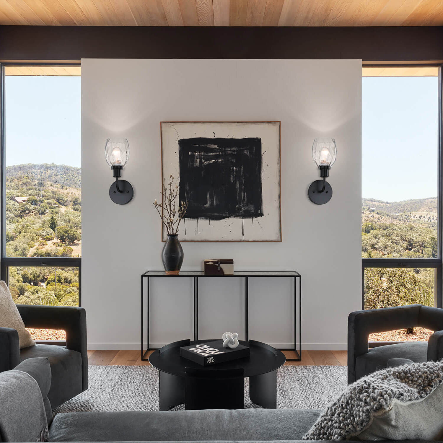 Black wall sconce can be paired with mixed with hardware in other fixtures.