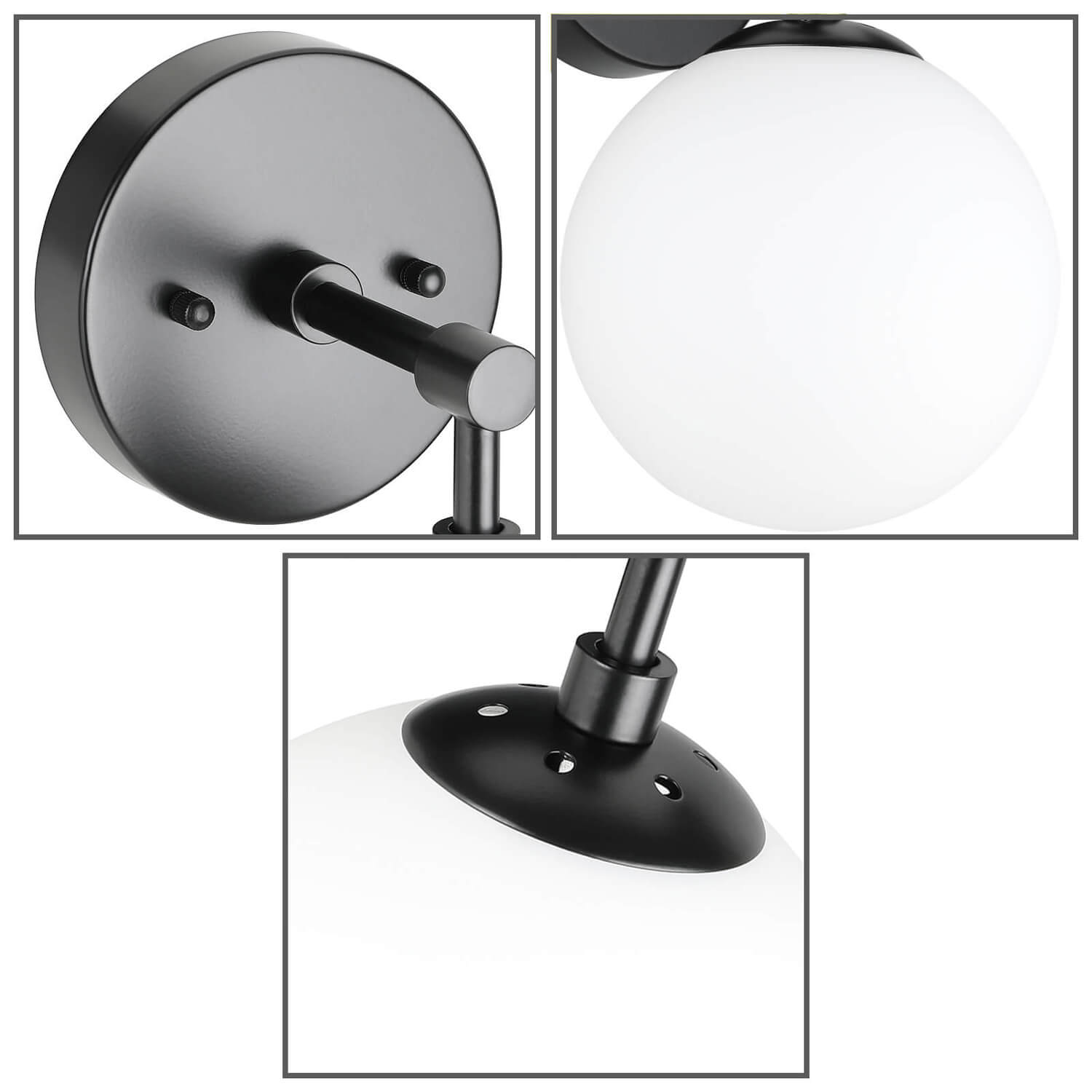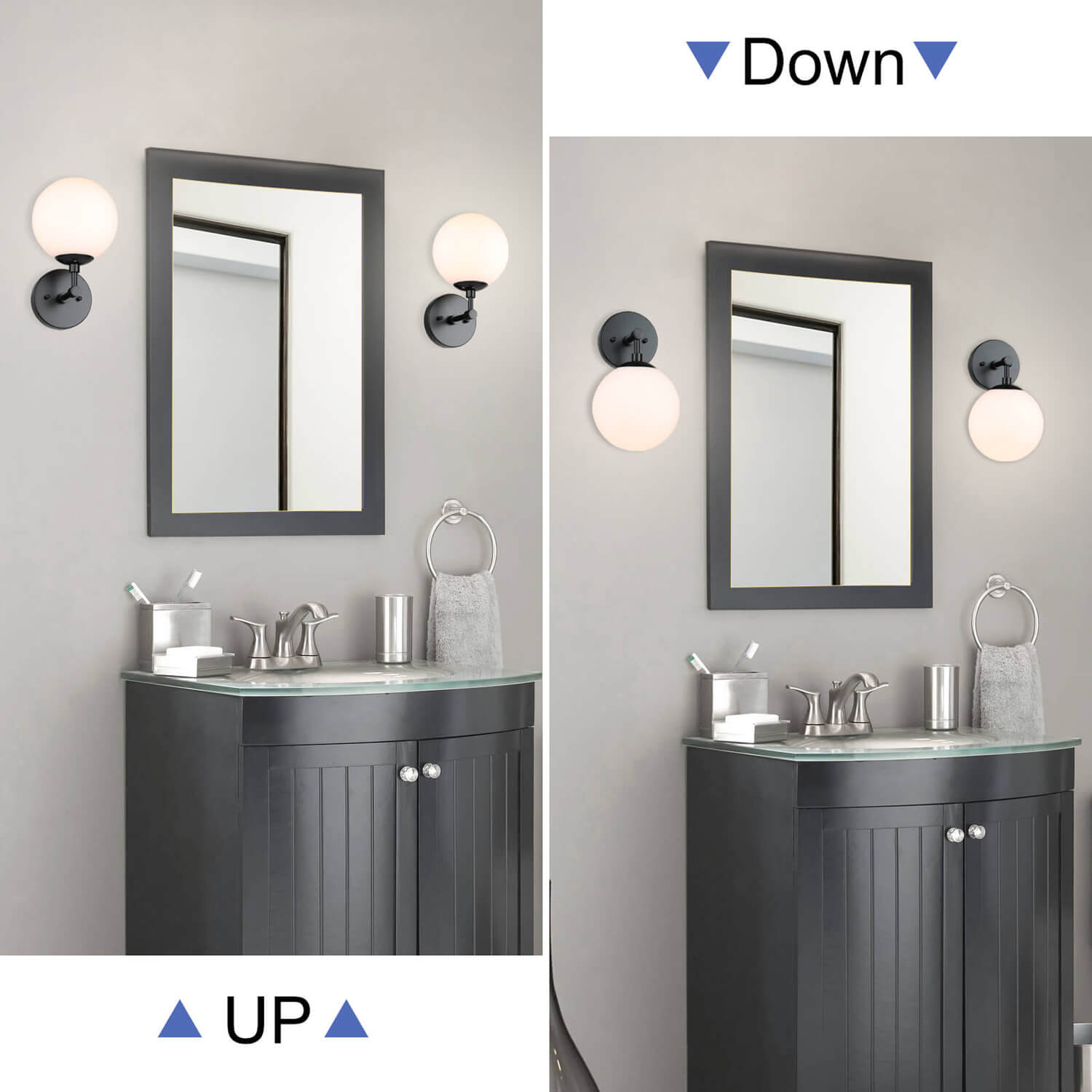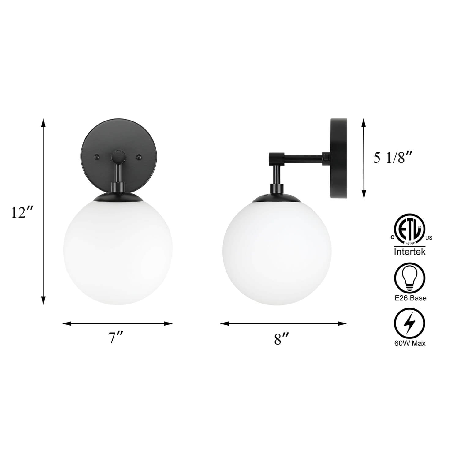 - FEATURE: Hardwired, Matte Black bathroom vanity lighting fixture with white globe glass shade; Single wall sconce is with simple design and easy to install