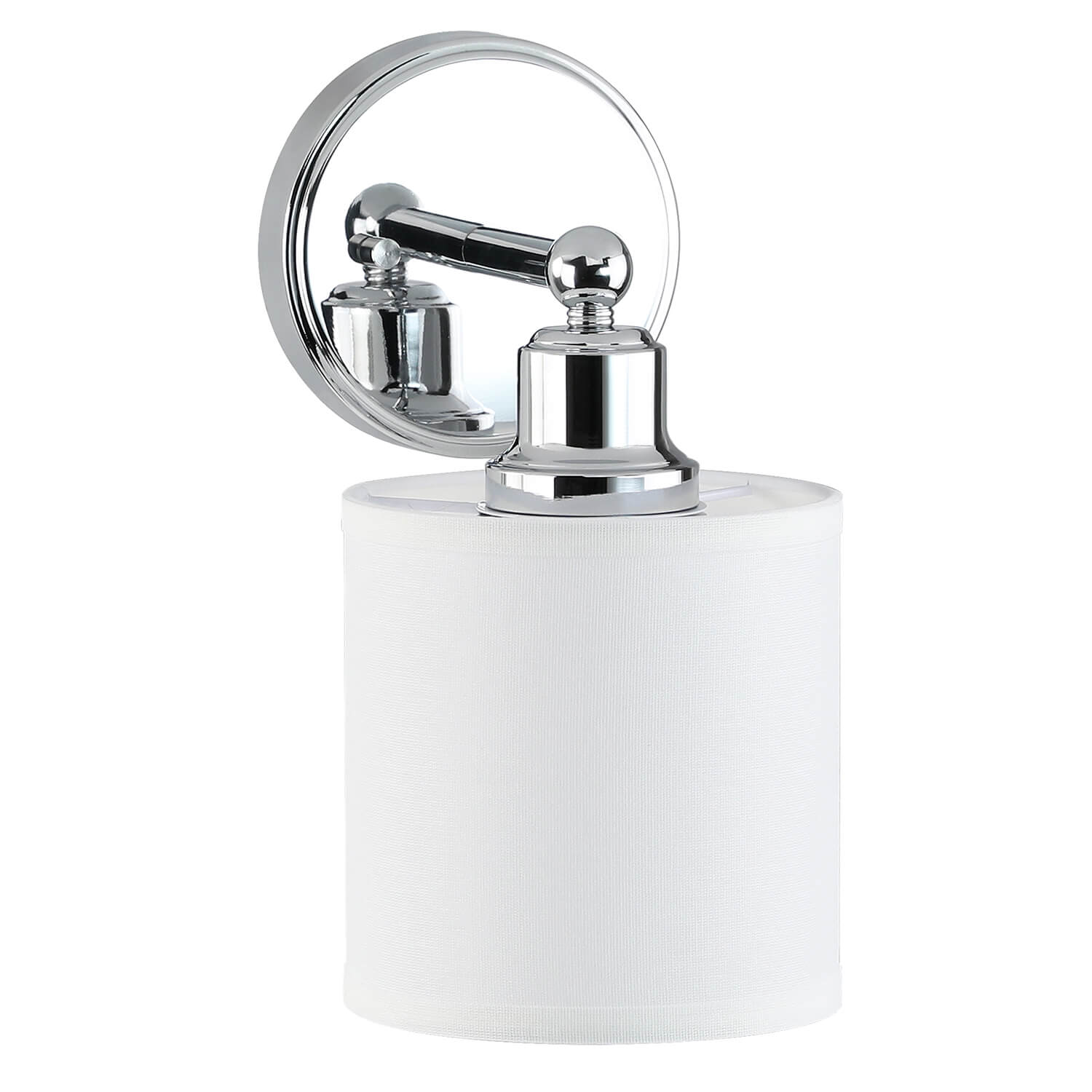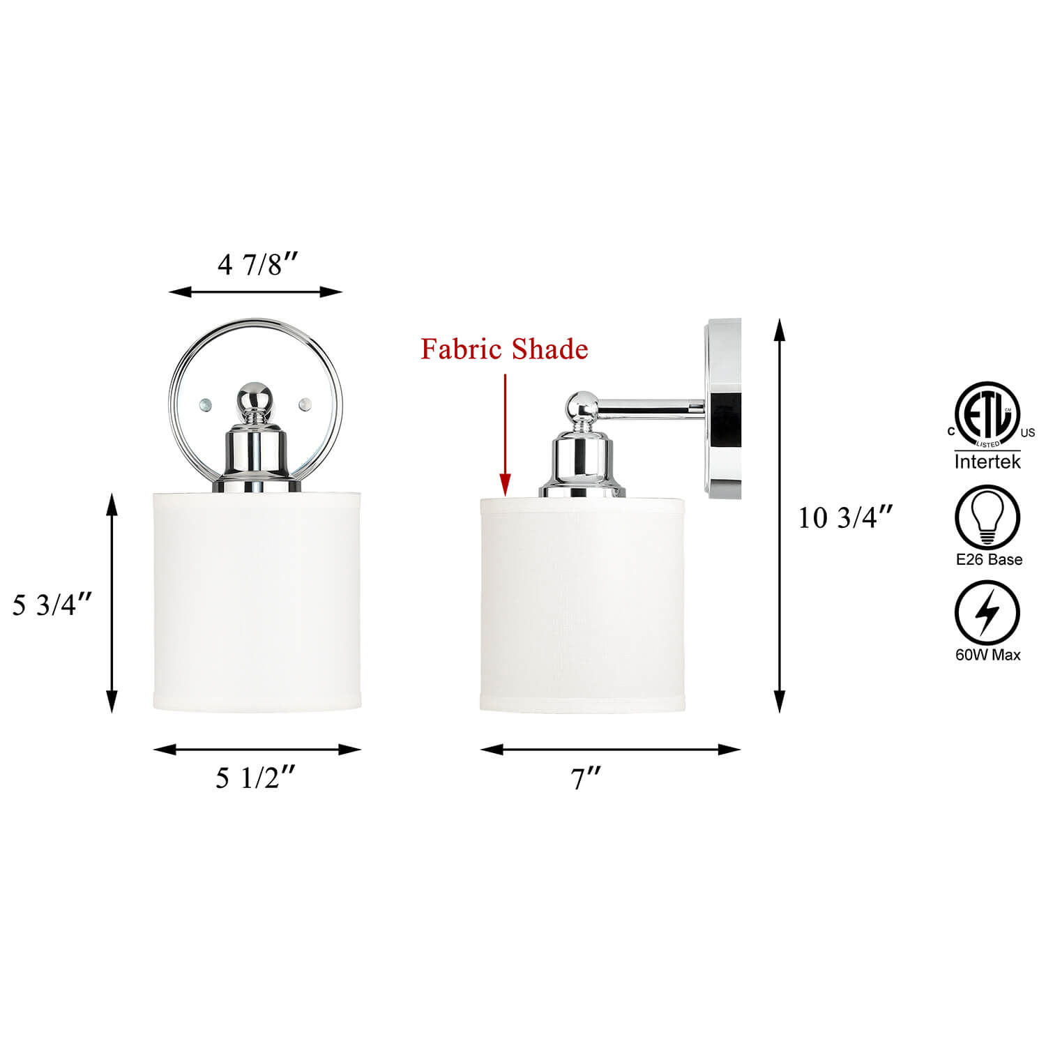 - FEATURE: Hardwired, chrome wall sconce with drum shade; Bathroom sconce is with simple design and easy to install and can be mounted up or down