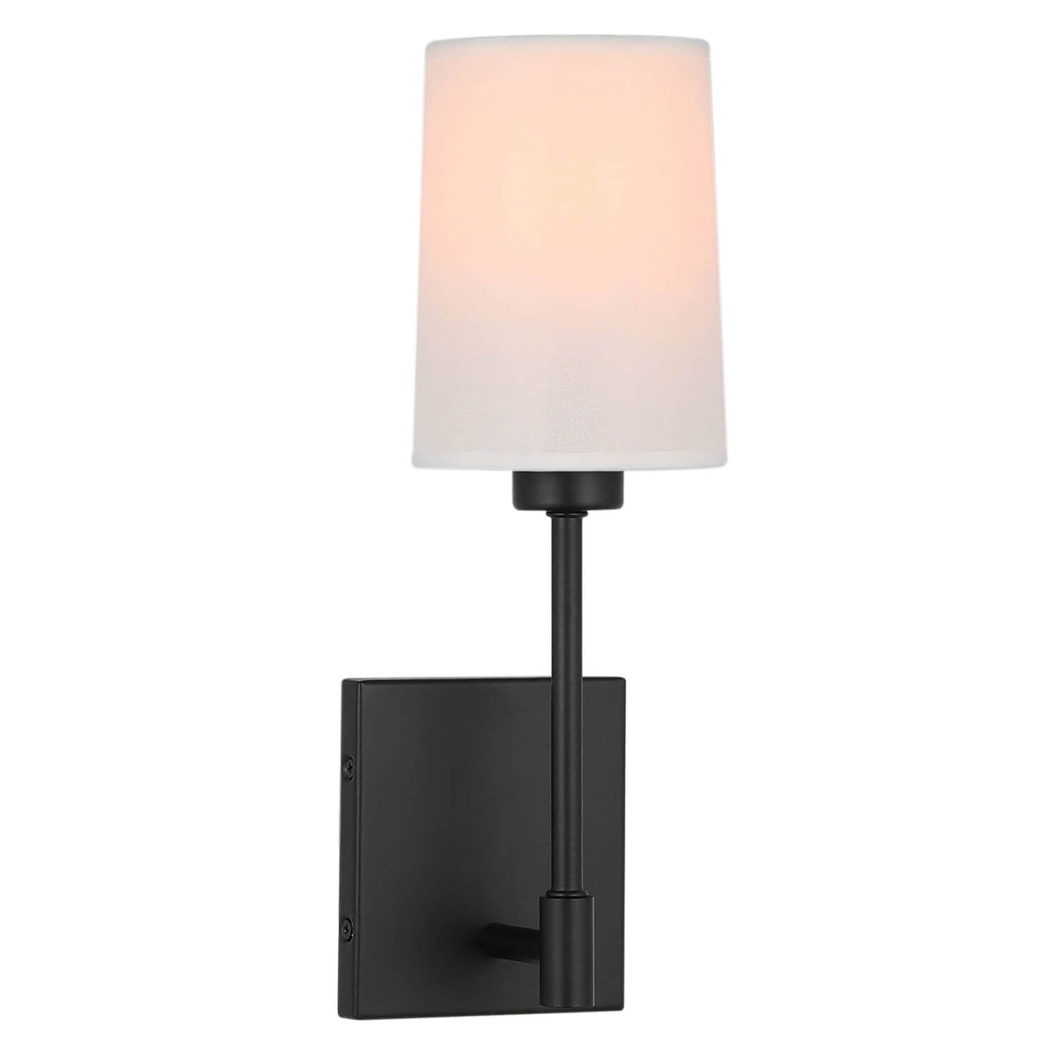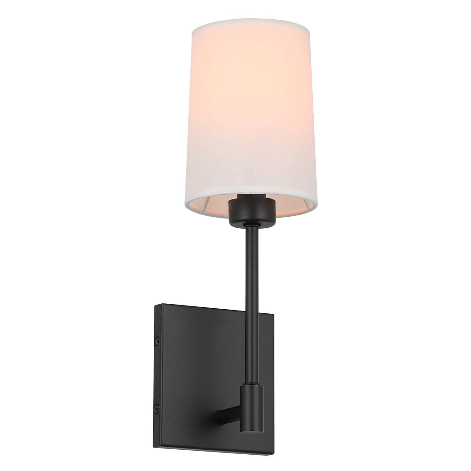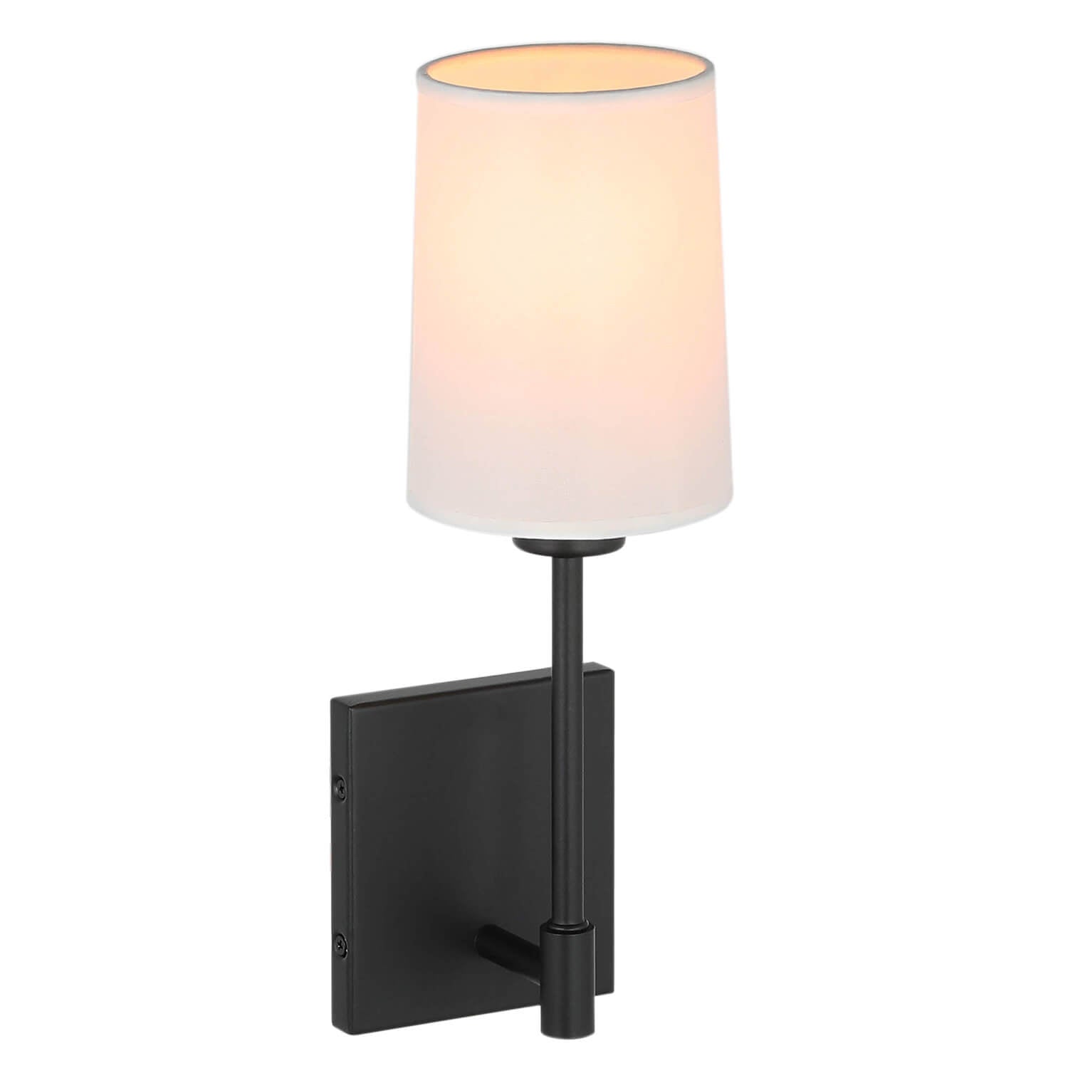 - FEATURE: Hardwired, Modern bedroom wall lamp in simple design features a white fabric shade atop a slim matte black body. This sophisticated wall sconce with shade conveys a refined, aesthetic style that will enhance the look of your home; and easy installation