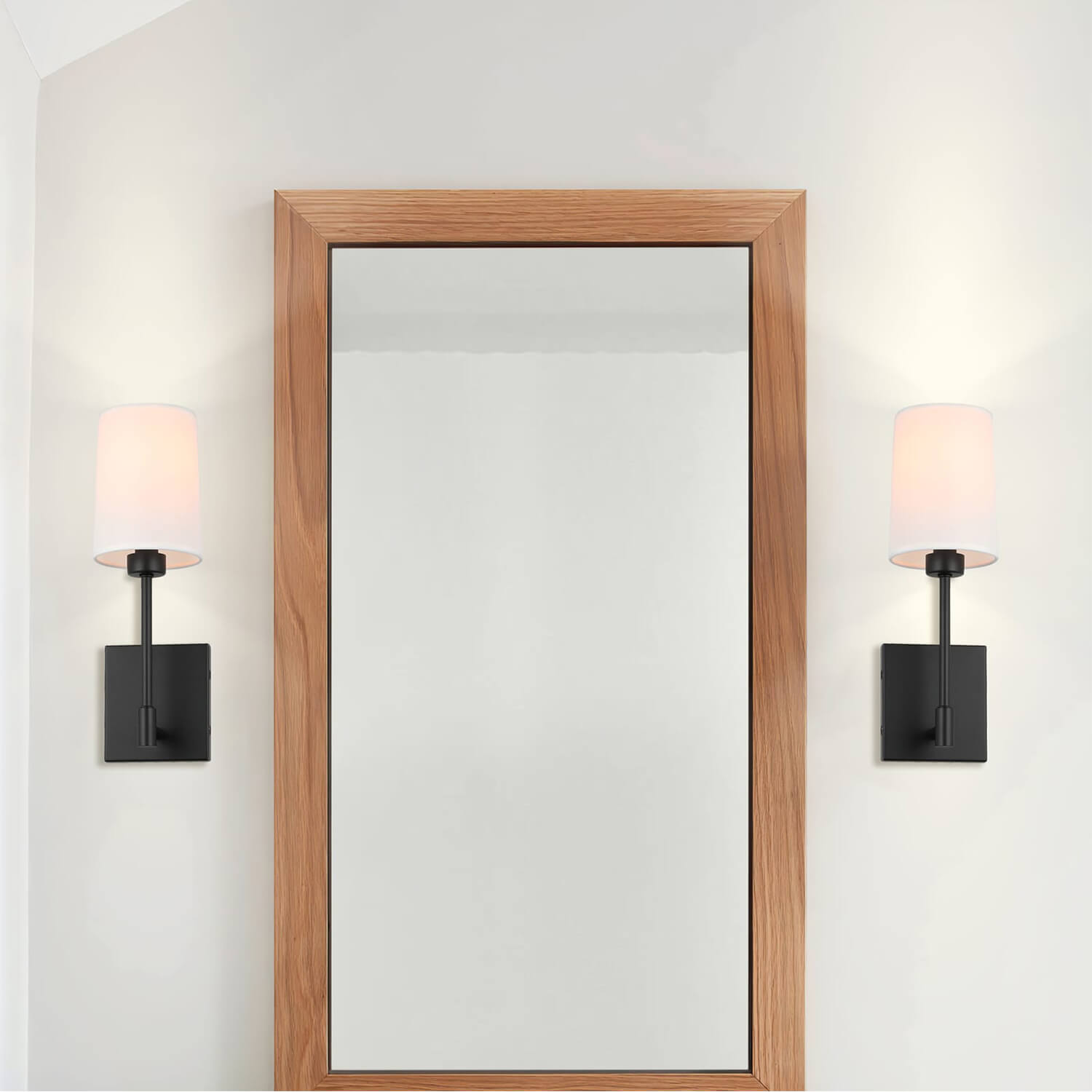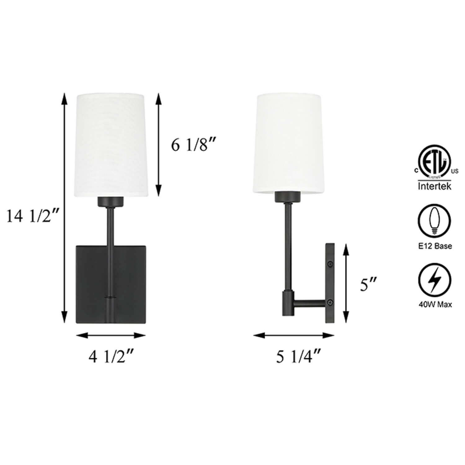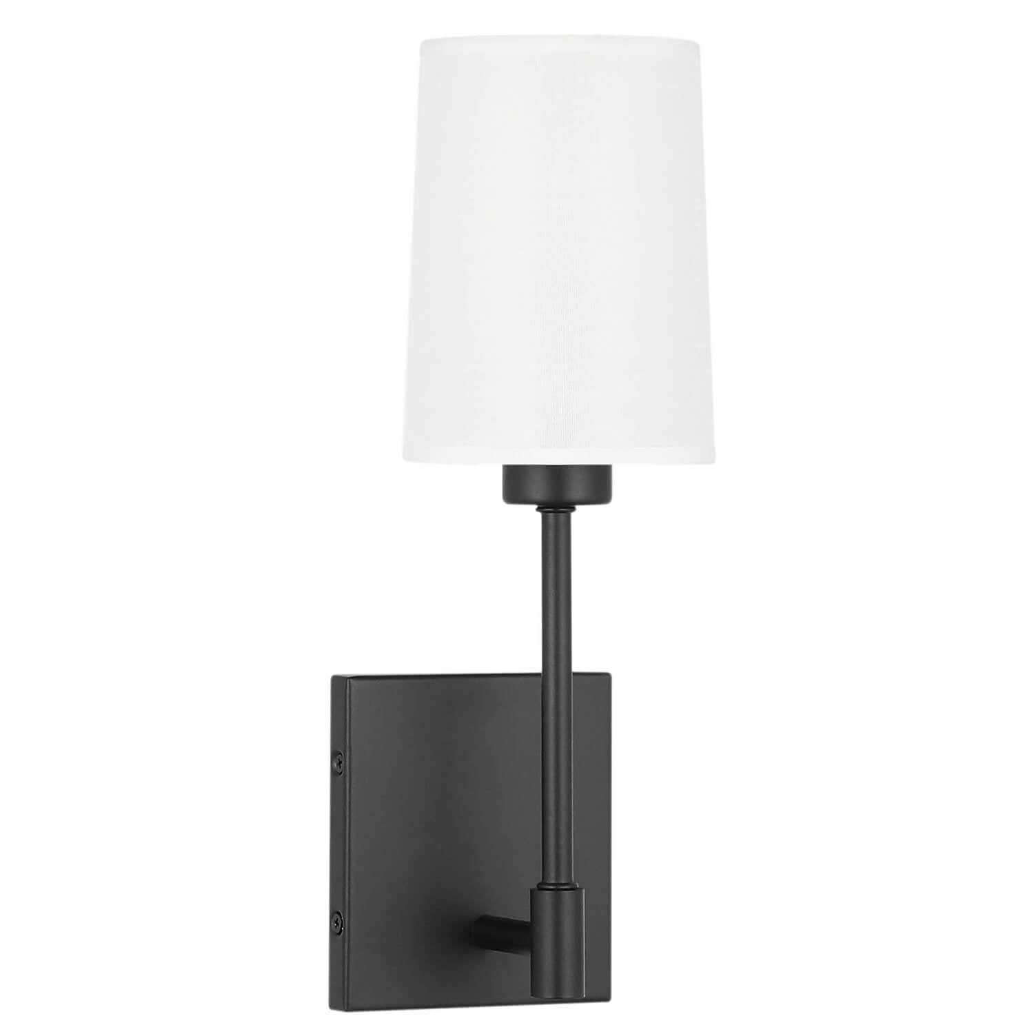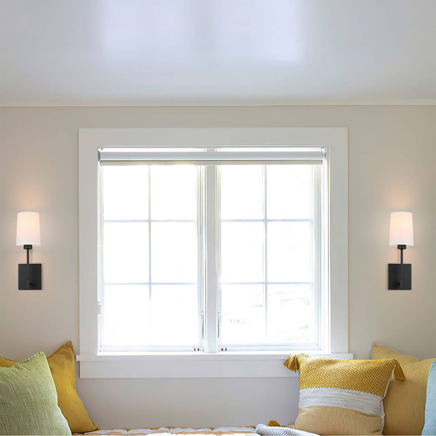 - FEATURE: Hardwired, Modern bedroom wall lamp in simple design features a white fabric shade atop a slim matte black body. This sophisticated wall sconce with shade conveys a refined, aesthetic style that will enhance the look of your home; and easy installation