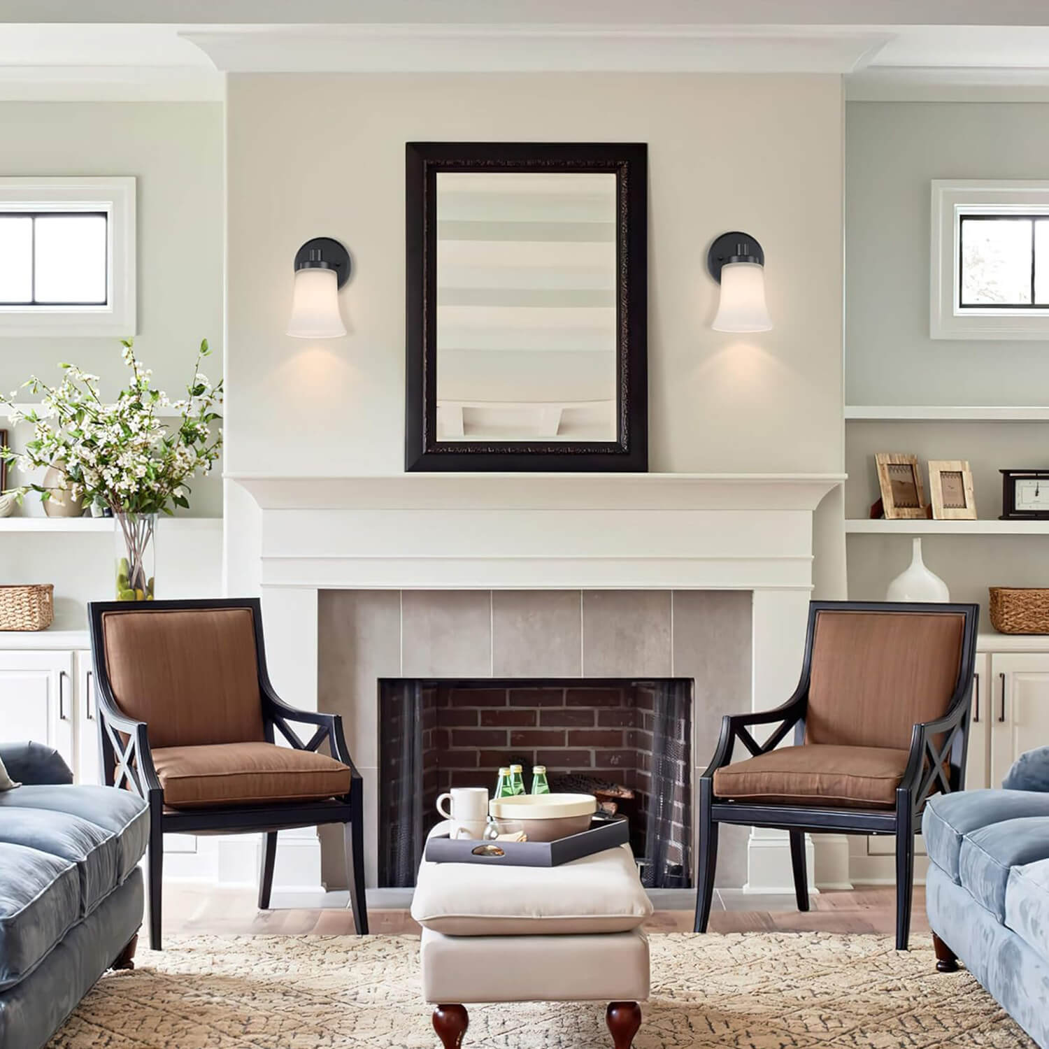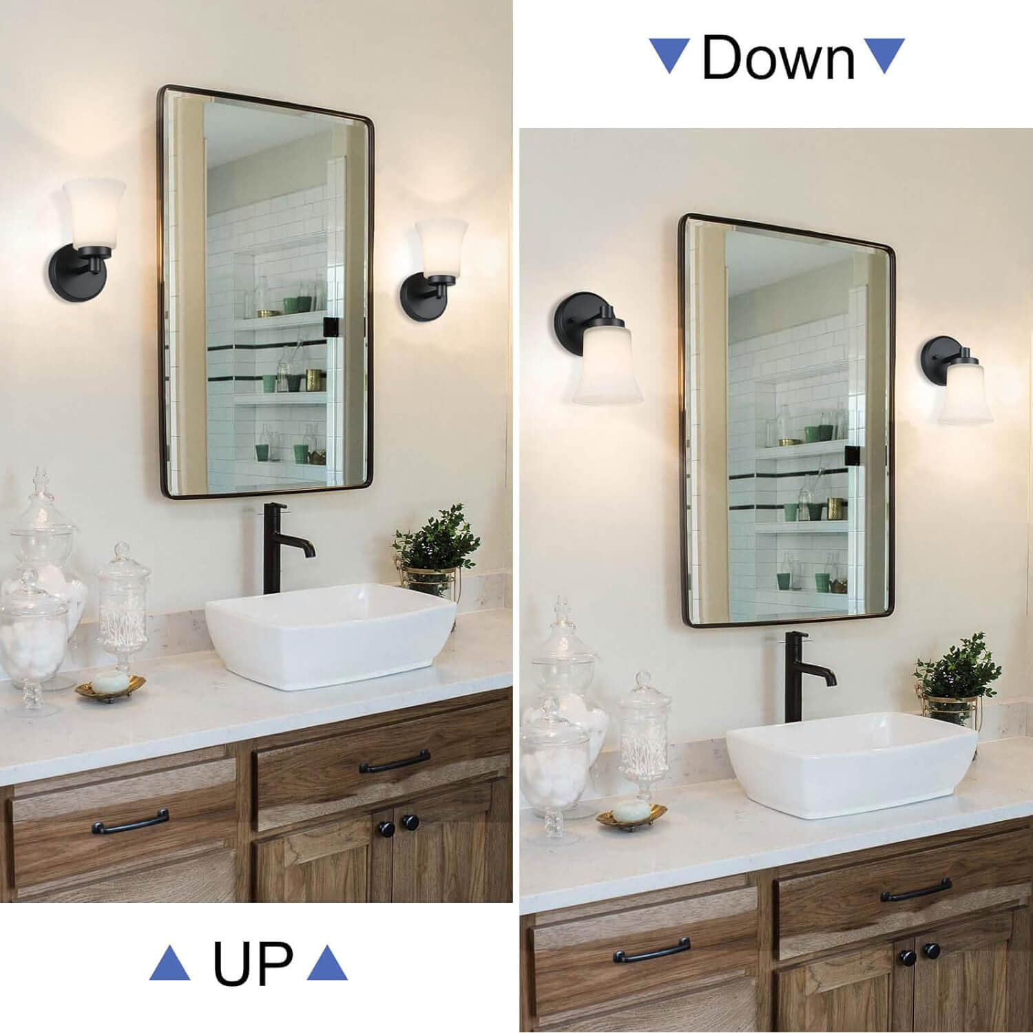 - CLASSIC DESIGN: Single wall sconce with white glass in matte black finish; This black vanity light is simple but classic design is perfect for bathrooms, bedrooms, corridors, entryways, kitchen, restaurant, living room and hallway.