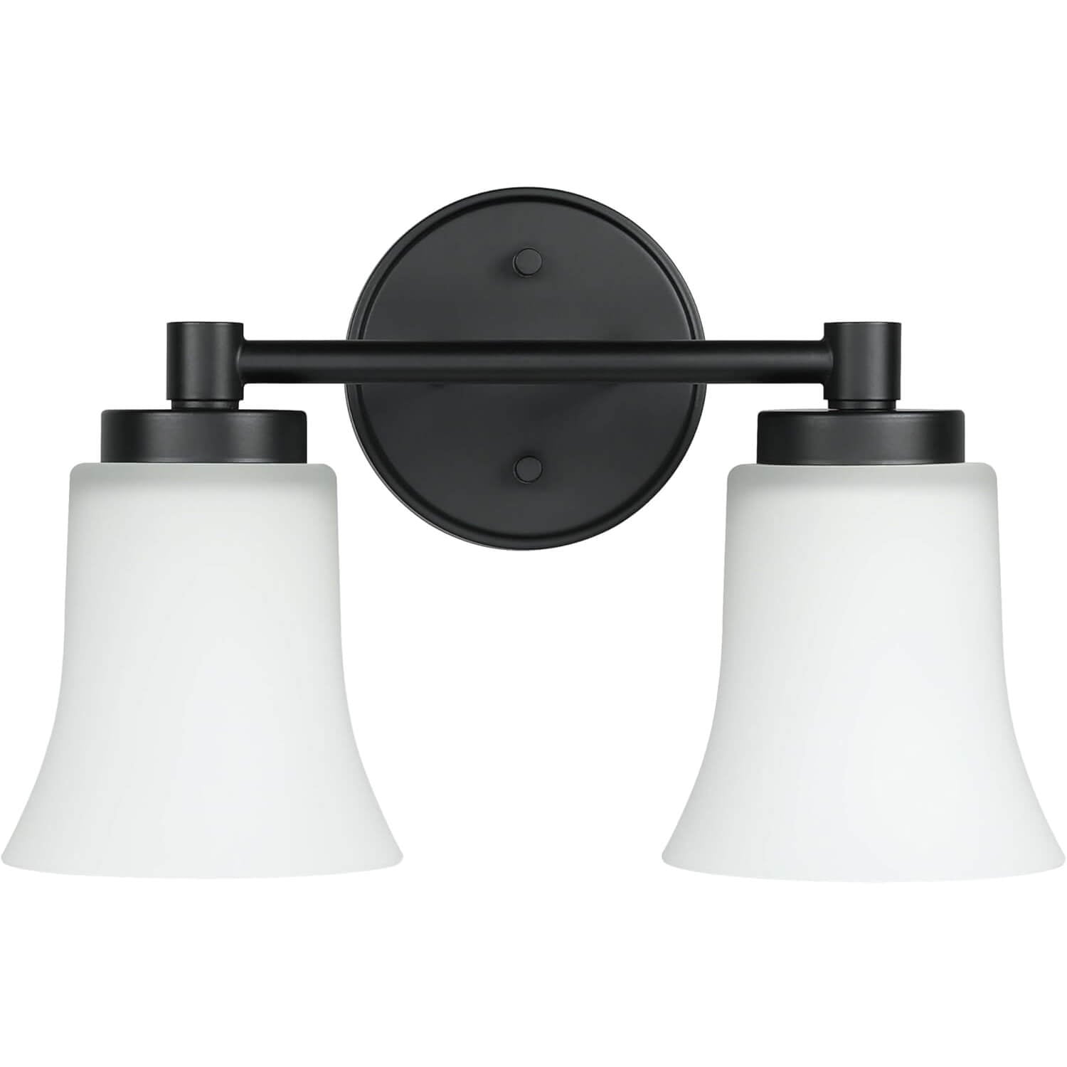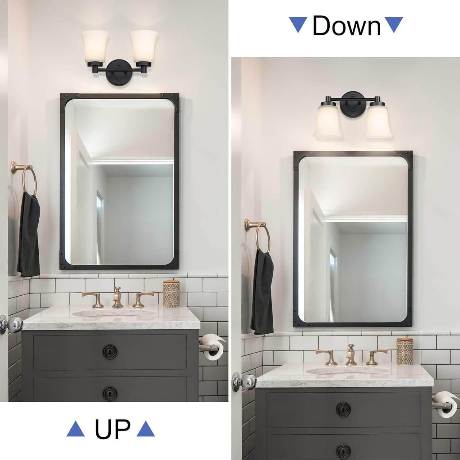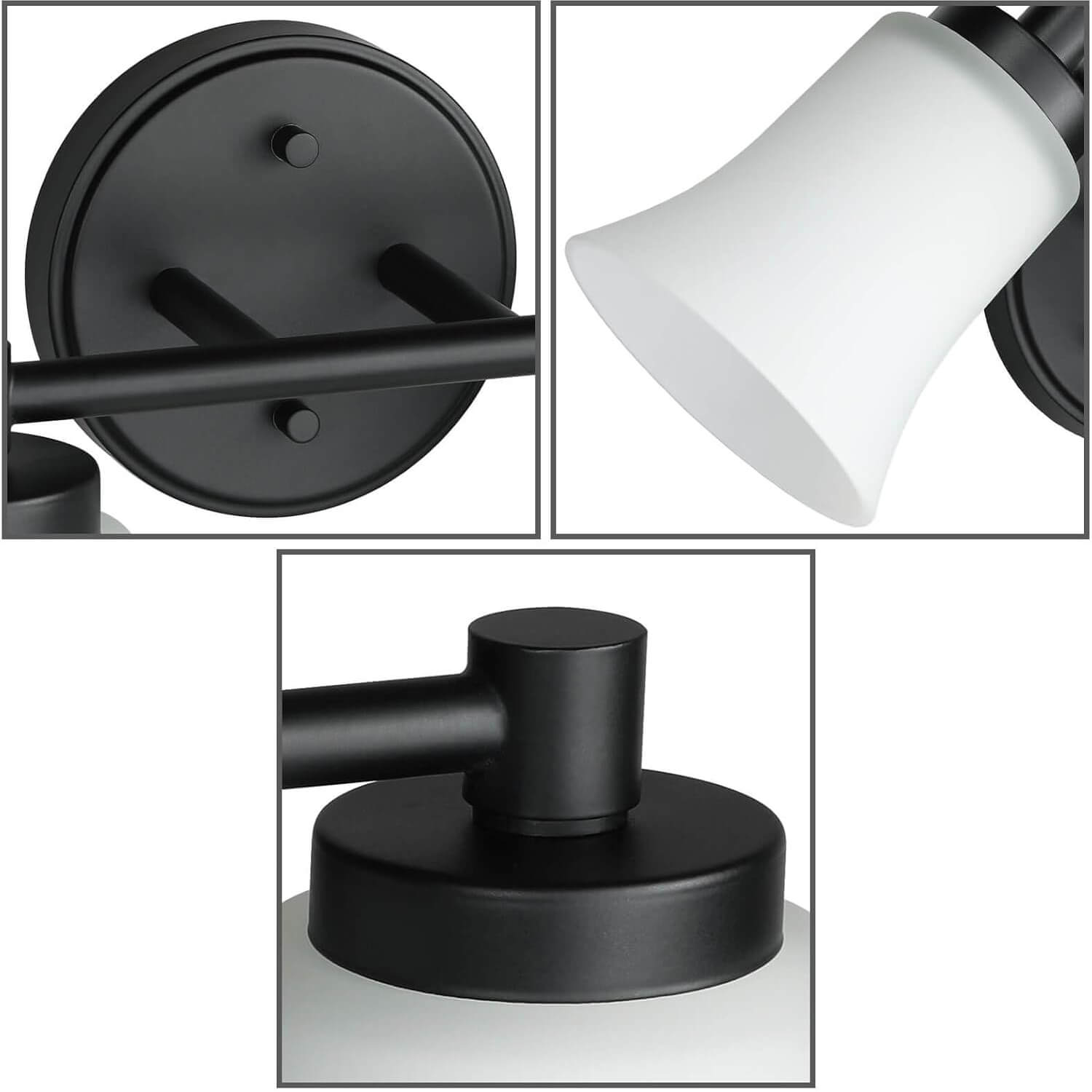 - CLASSIC DESIGN: 2 light wall sconce lighting with white glass in matte black finish; This double light vanity light is simple but classic design is perfect for bathrooms, bedrooms, corridors, entryways, kitchen, restaurant, dinning and living areas