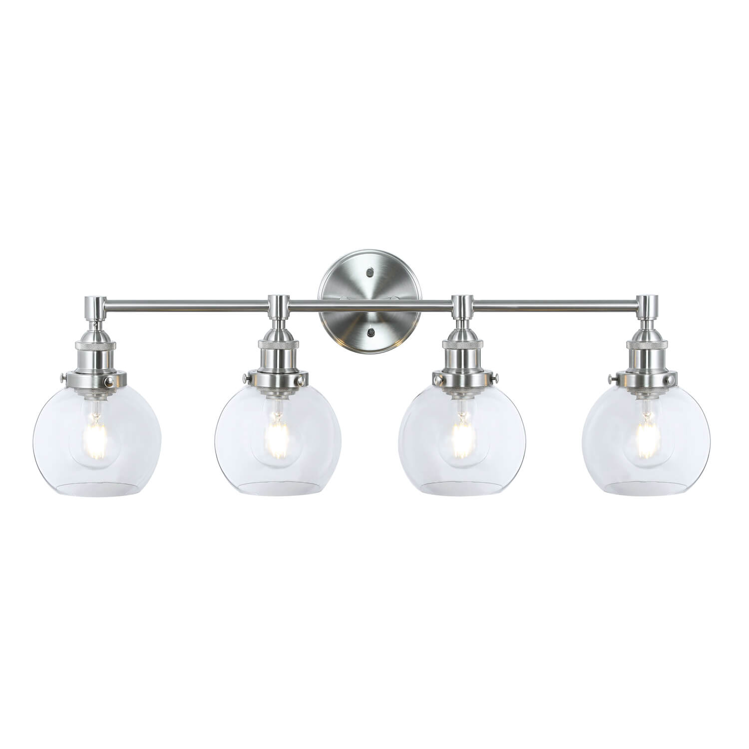 - FEATURE: Hardwired; Vanity light with globe glass in brushed nickel ideal for any bath and vanity settings in urban industrial, rustic, mid-century modern, traditional, farmhouse, or vintage electric interiors. Bathroom wall light 4 light is with farmhouse design and easy to install