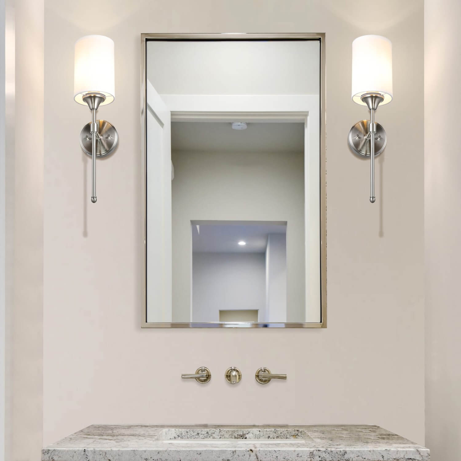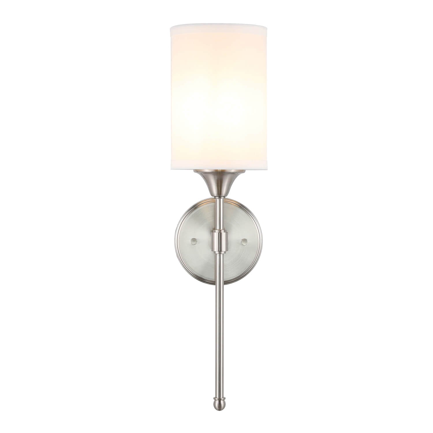 - CLASSIC & TRANSITIONAL DESIGN: 1 light bathroom sconce vanity light pairs simply harware body with white fabric shade that illumitated a warm light shine to bathrooms, bedrooms, corridors, entryways, kitchen, restaurant, dinning and living areas