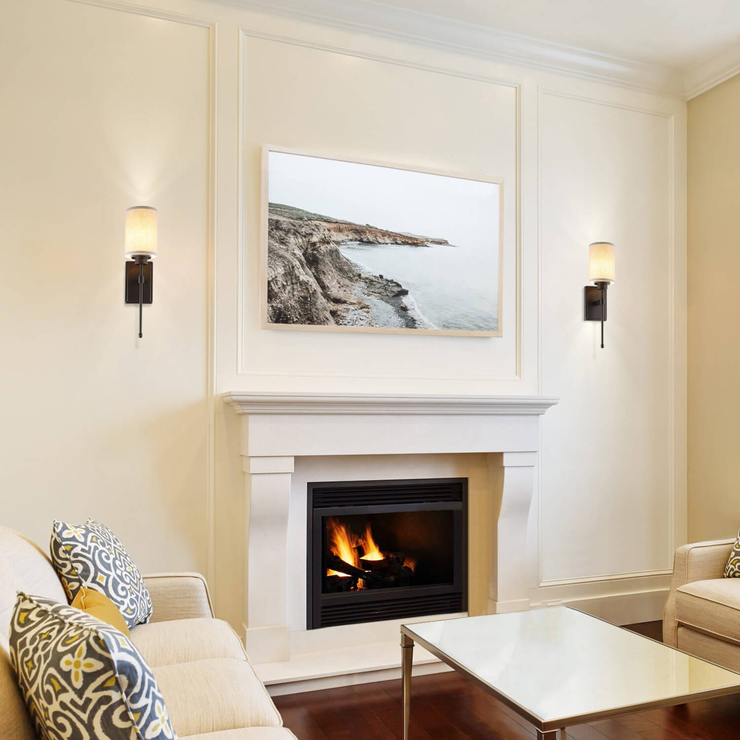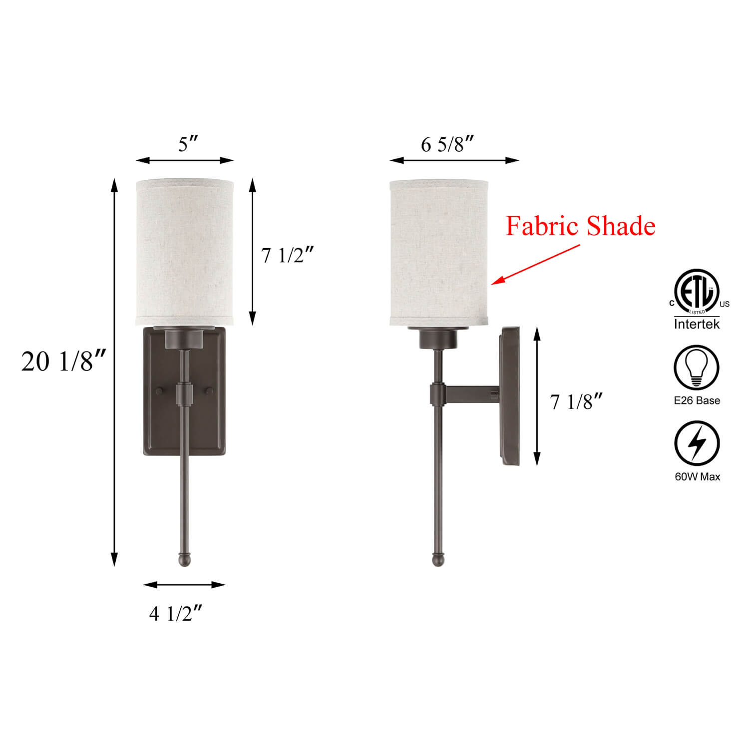 - FEATURE: Hardwired, Wall sconces lighting features a linen fabric shade in dark bronze finish; single bathroom vanity sconce is with simple design and easy to install
