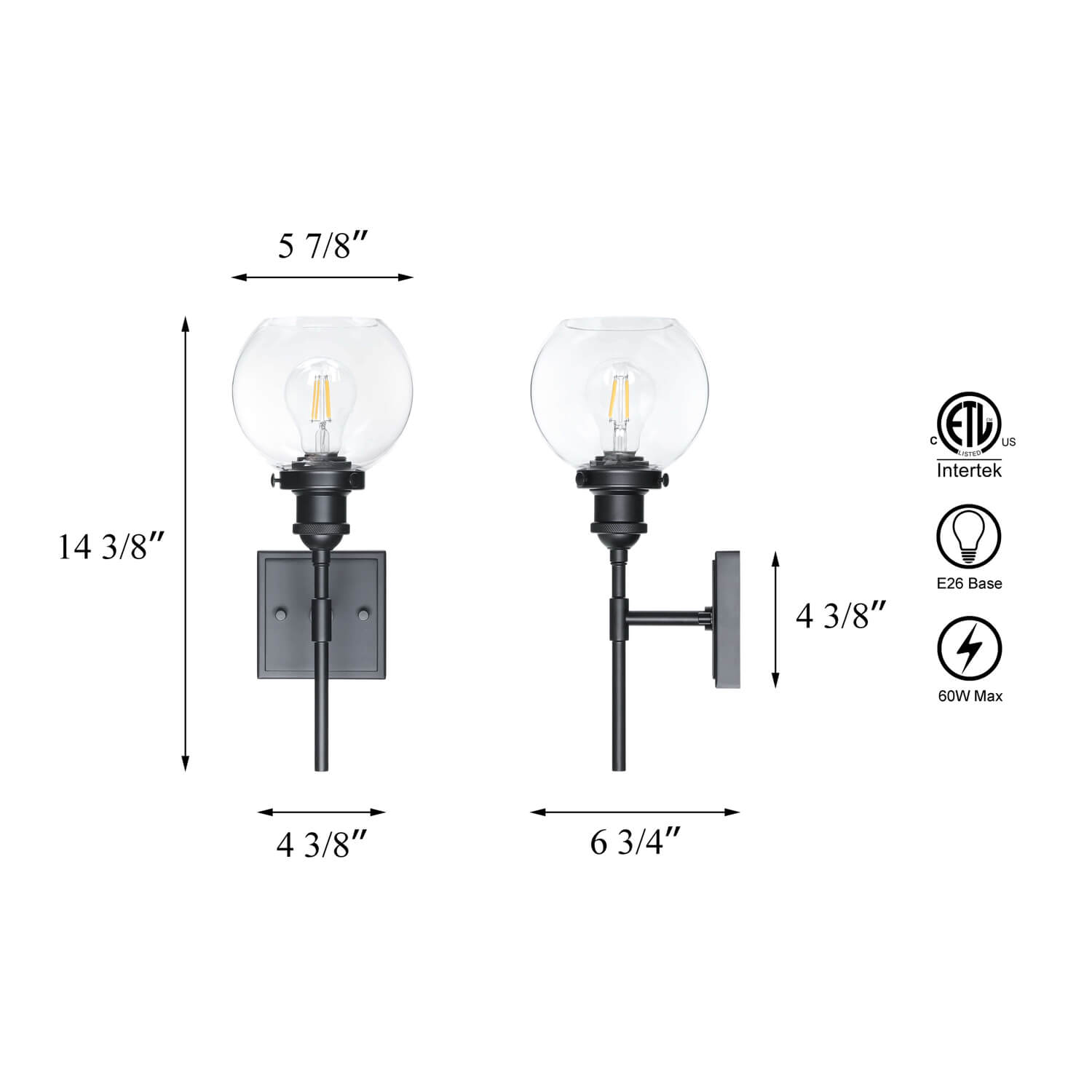 • FEATURE: This black wall light with clear glass can light up any room. Simple but modern attention to detail for a brilliant quality fixture. Specifically designed to live in any areas such as bathrooms, kitchen, living room, dining room, entryway or bedroom; this globe bath sconce lighting is also suggest to mount near mirror.