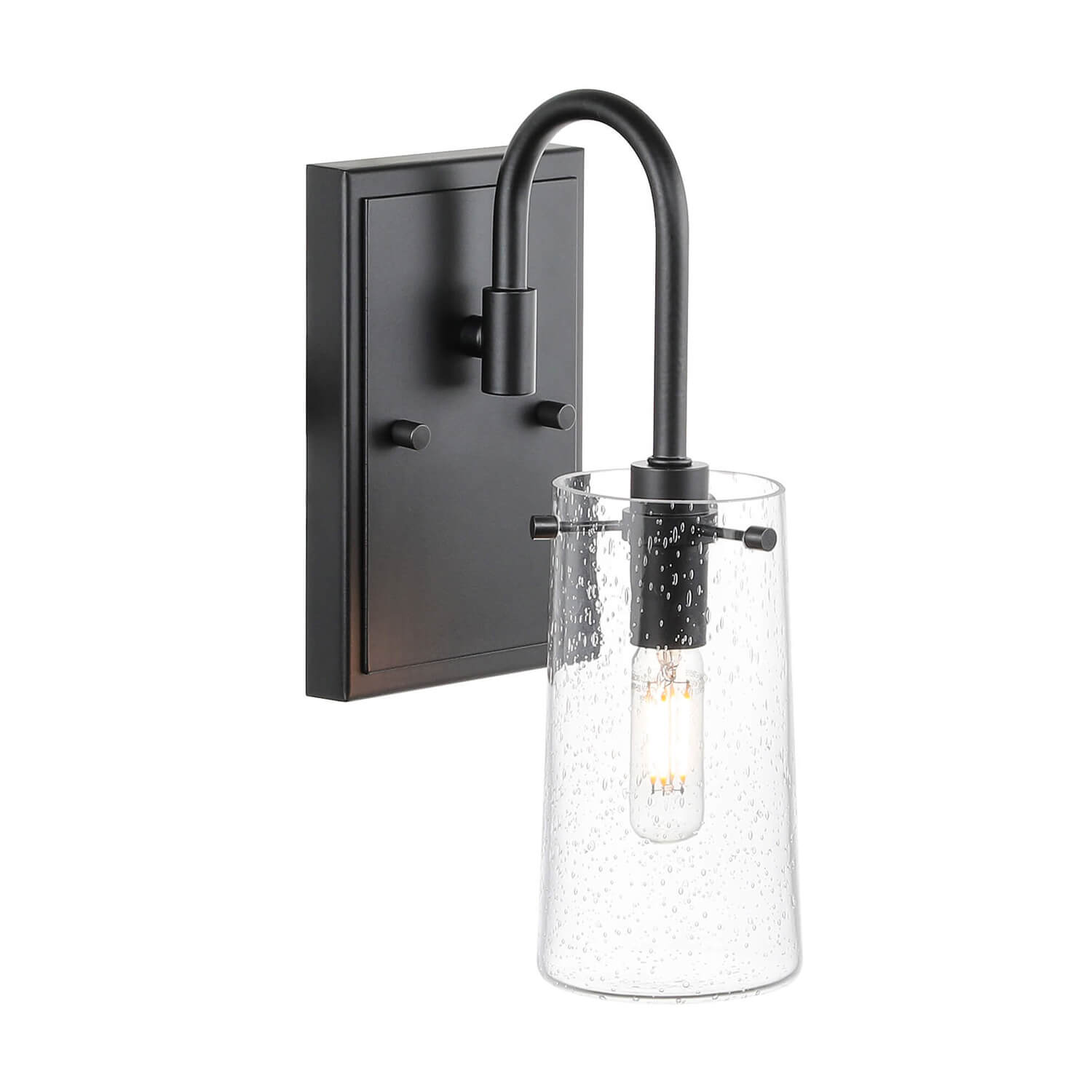 Industrial Black 1 Light Vanity Sconce Light with Seeded Glass XB-W1283-1-MB