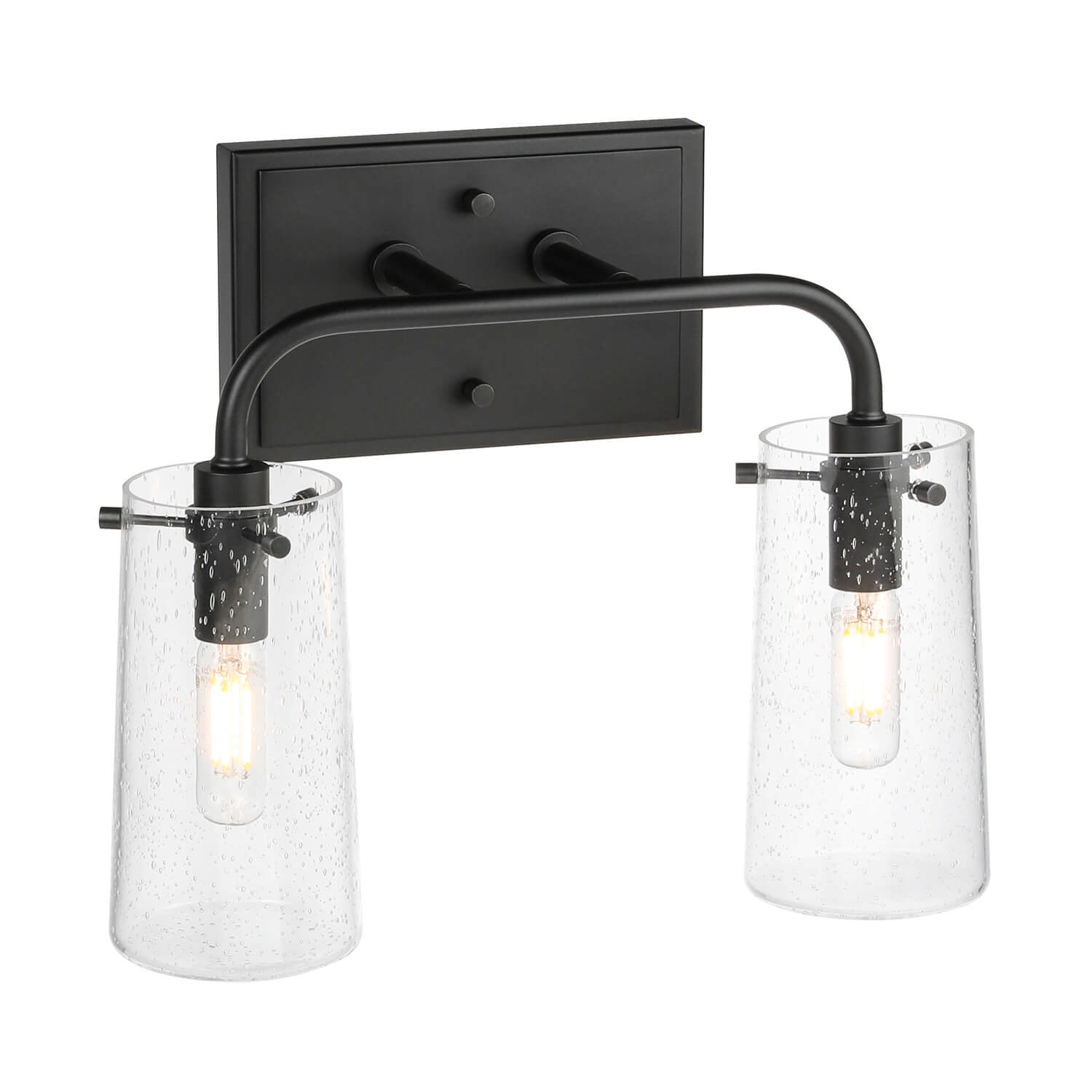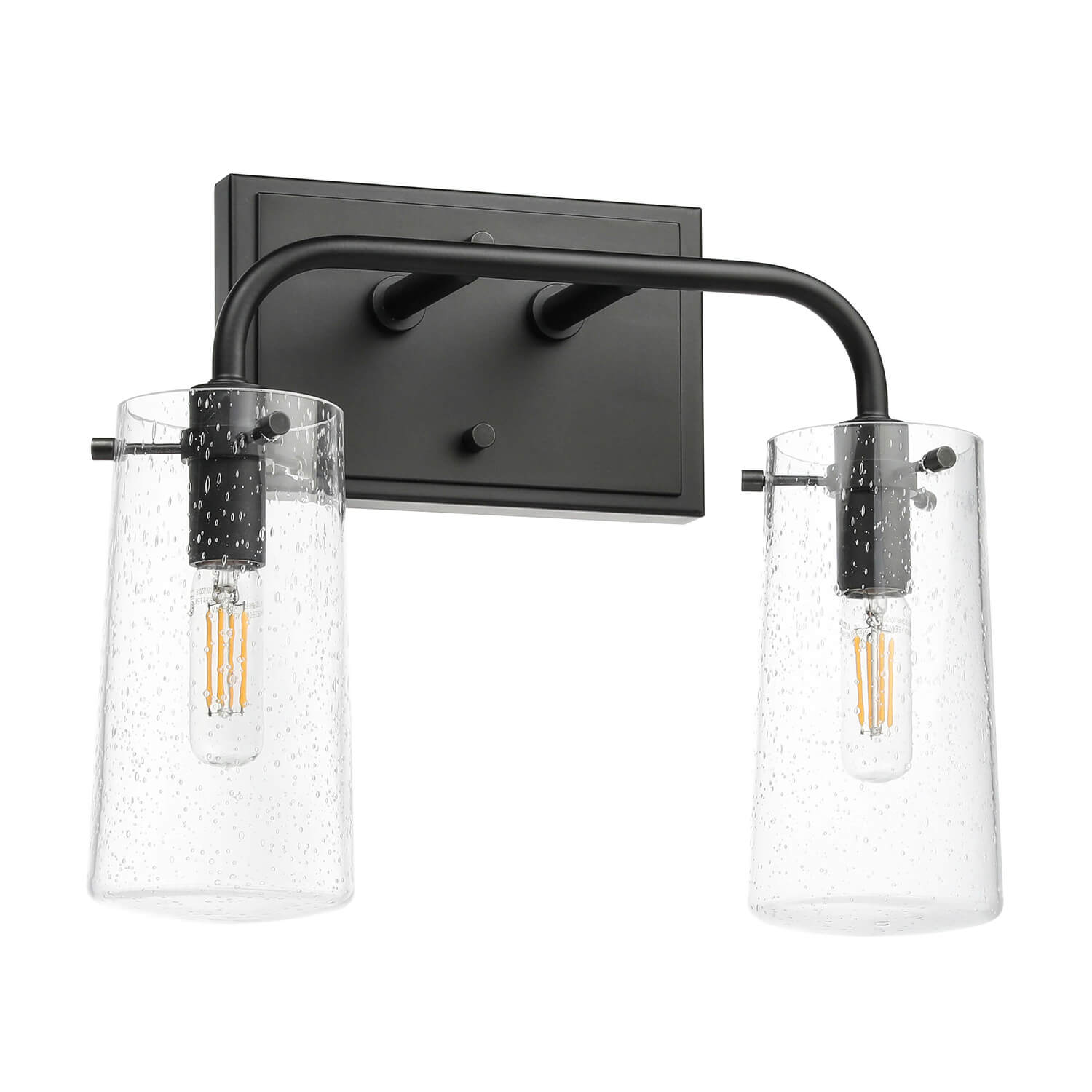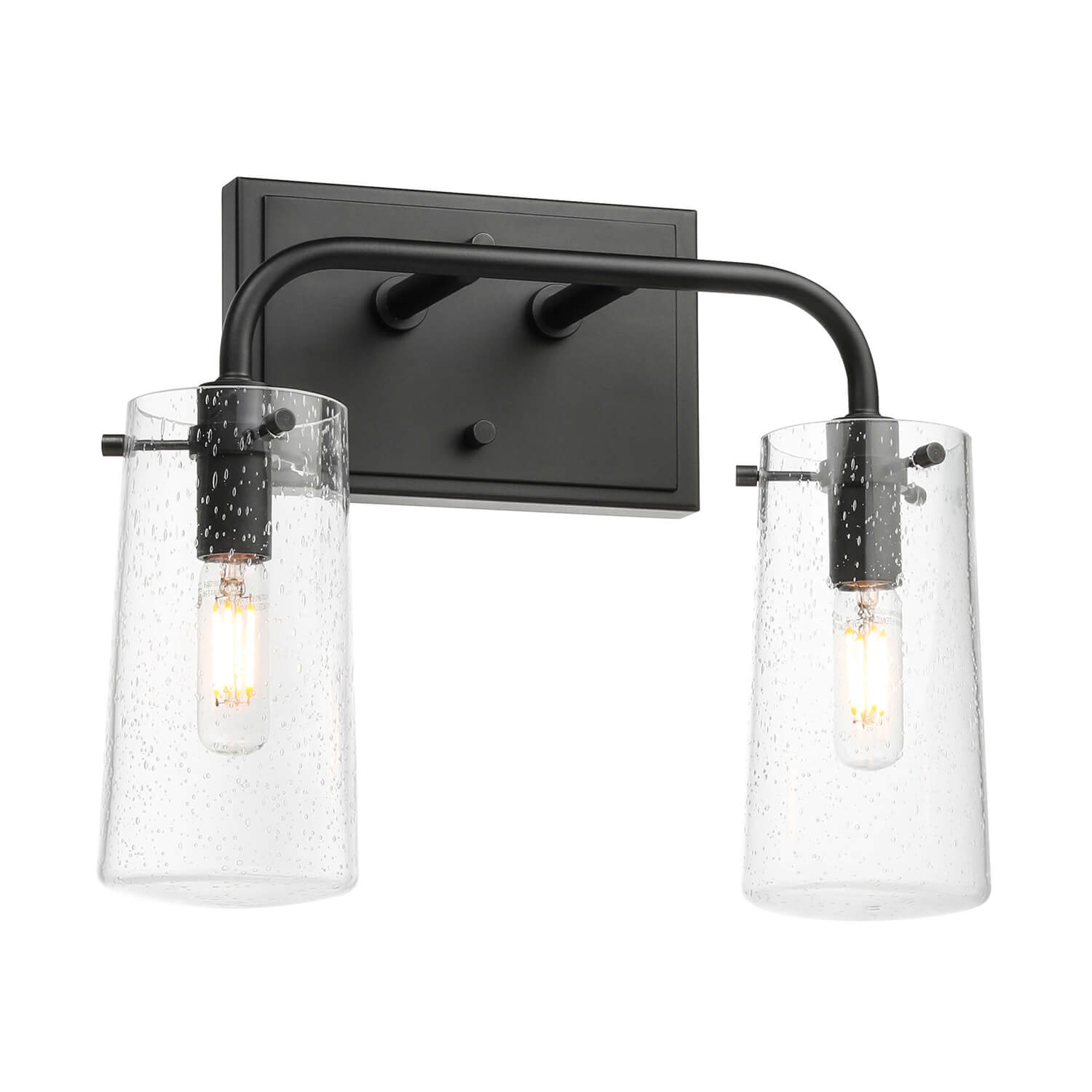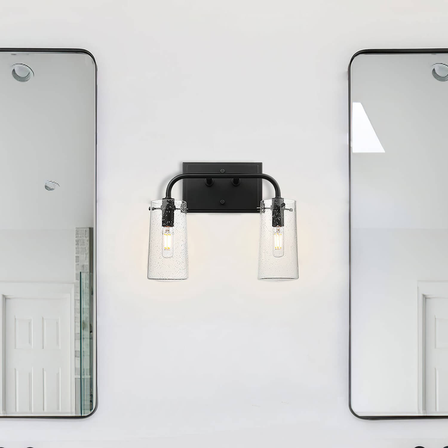 - INDUSTRIAL DESIGN: This 2 light bathroom vanity light features a industrial retro style with matte black finish and jar shade seeded glass shade. This vanity light create a warm and soft atmosphere and highlight your unique taste.